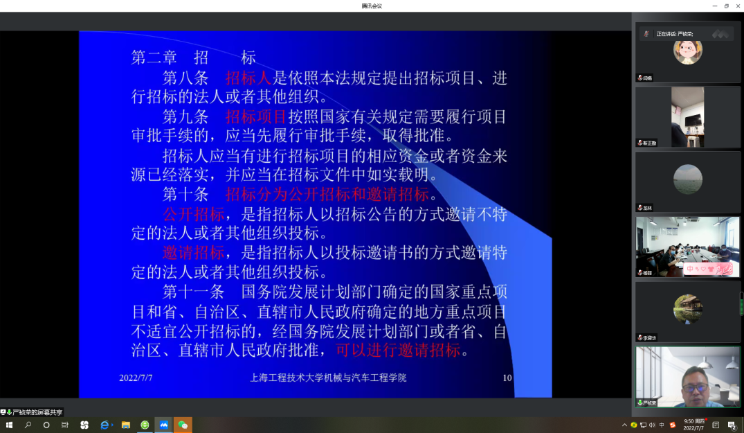 7月7日上午,机械与汽车工程学院召开招投标相关法律法规制度及案例培训会。副院长严祯荣、各系室分管主任及实验中心全体教师以线上线下相结合的方式参加会议,会议由实验中心主任马西沛主持。