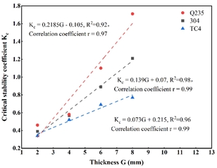 上海工程技术大学材料科学与工程学院刘红兵副教授指导研究生鲍文在中科院一区期刊《Journal of Manufacturing Processes》(影响因子6.1)发表论文《Keyhole critical failure criteria and variation rule under different thicknesses and multiple materials in K-TIG welding》。论文通过研究不同厚度和不同材料的板材在不同焊接参数下的K-TIG焊接特性,建立了焊缝尺寸、焊接热输入分别与板材厚度G之间的关系,揭示了小孔稳定性形成机理,并建立了小孔稳定的临界准则,为该技术的应用提供了有效的数据支撑。图1. 不同材料小孔临界稳定系数拟合曲线s图2. 不同材料下热输入上下限与板厚G的拟合曲线另外,课题组研究生杜金红利用PGCR母晶粒重构的方法分析TC4合金焊接过程的相成分演变规律,系统分析热输入的改变引起的组织变化对接头的力学性能影响规律,建立组织和力学及腐蚀性能的关系,分析电化学和浸泡腐蚀联合腐蚀机制。相关研究成果《Effects of heat inpu