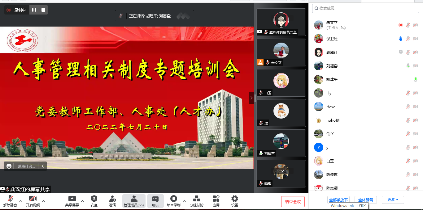 为扎实推进巡视“回头看”整改落实,进一步加强和规范二级部门人事管理,提高教职工规矩意识、纪律意识,7月20日上午,党委教师工作部、人事处(人才办)在线举办了“人事管理相关制度专题培训会”,学校各部门人事专员、教师工作联络员参加了培训。会议由教师工作部副部长、人事处副处长胡建平主持。