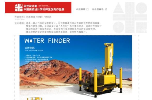 作品介绍:1.集水钻、气钻于一体 2.适应各种地层、钻孔效率更加高效节能 3.采用AMT手自一体自动挡变速箱 4.包容式设计,整体更加系统和美观 5.长行程倍速机构设计,加速传动效率 6.座舱设计解决了以往的人机操作矛盾 问题,驾驶员可以在舱内完成任务控制, 并可以在恶劣天气正常作业。