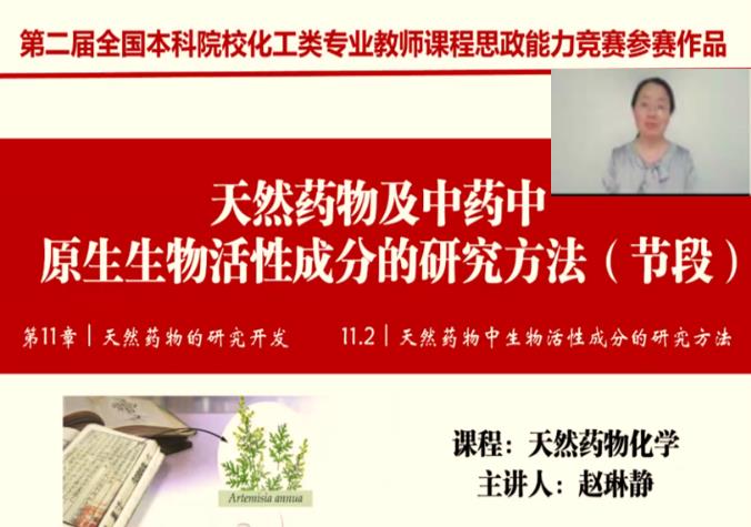 本次参赛课程《天然药物化学》为上海市重点课程,2017年入选我校首批“课程思政”建设专项。课程负责人赵琳静副教授曾荣获校“青年教学明星”“优秀主讲教师”等荣誉称号。本次获奖体现了我校化工专业课程思政教学水平,是学校学院全面推进课程思政教育教学体系建设工作,深入挖掘课程思政元素,充分发挥课程思政育人功能,强化课程育人导向,推进课程思政高质量发展,切实把思想政治教育贯穿教育教学全过程,形成全员育人、全程育人、全方位育人格局过程中取得的可喜成果。