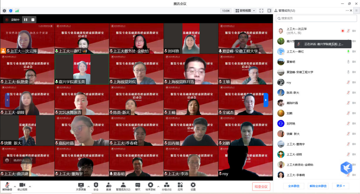会上夏春明副校长指出,国家教育部于2021年7月启动首批虚拟教研室试点建设工作,旨在依托现代信息技术,探索建设“智能+”时代以学生为中心的协同育人机制,打造一体化的新型教育教学基层组织,全面提高教师教书育人能力。希望“服装专业基础课程群虚拟教研室”坚持“开放、共建、共享、共荣:共同摸索、共同创新、共同实践”的原则和方针。在实体教研室的研究与实践基础上,充分发挥长三角地域地方高校的教学资源,形成教学范式,并建设一批优质课程,以带动该地区高校课程教学的全面改革和专业教学质量的提升。