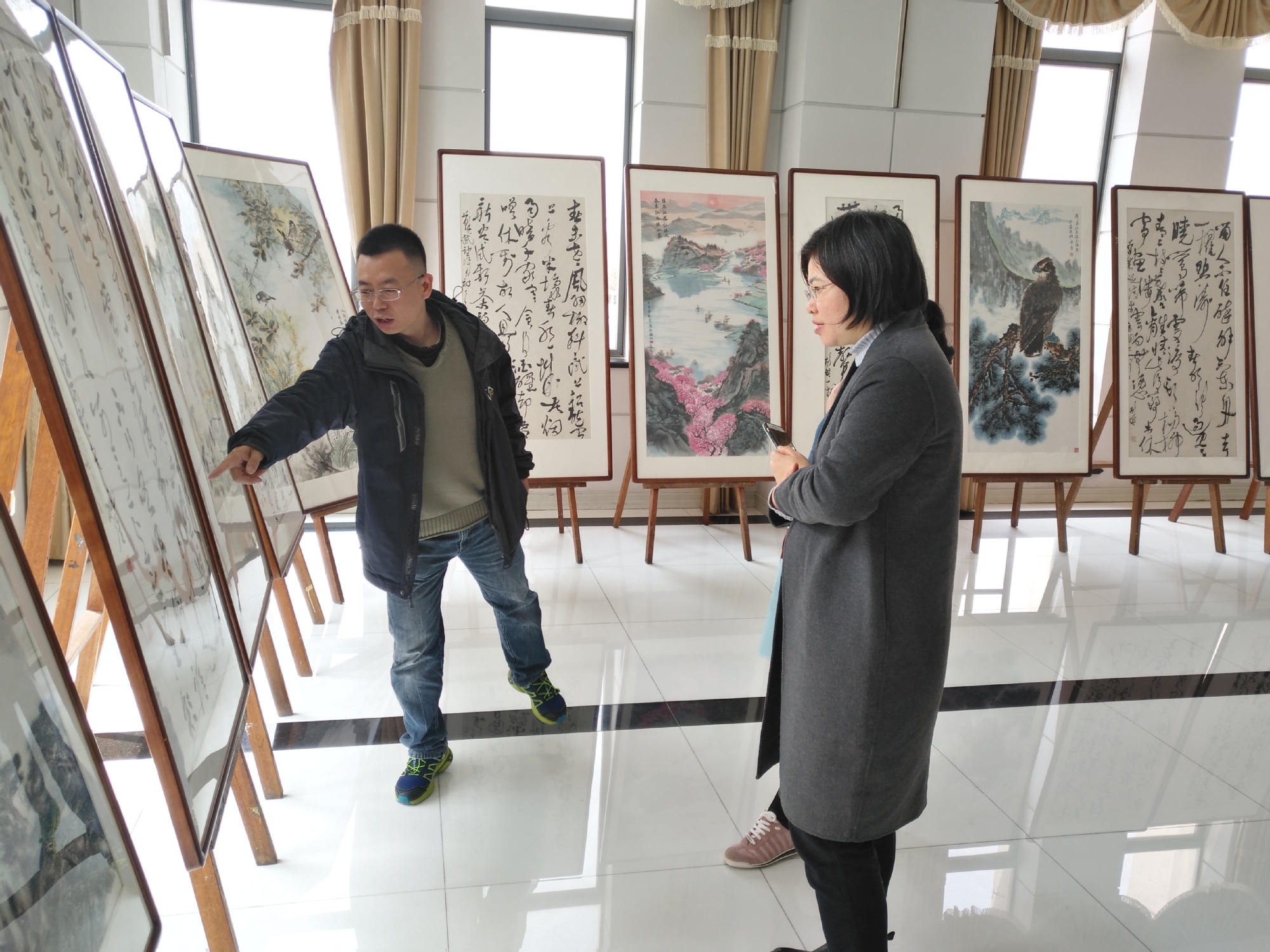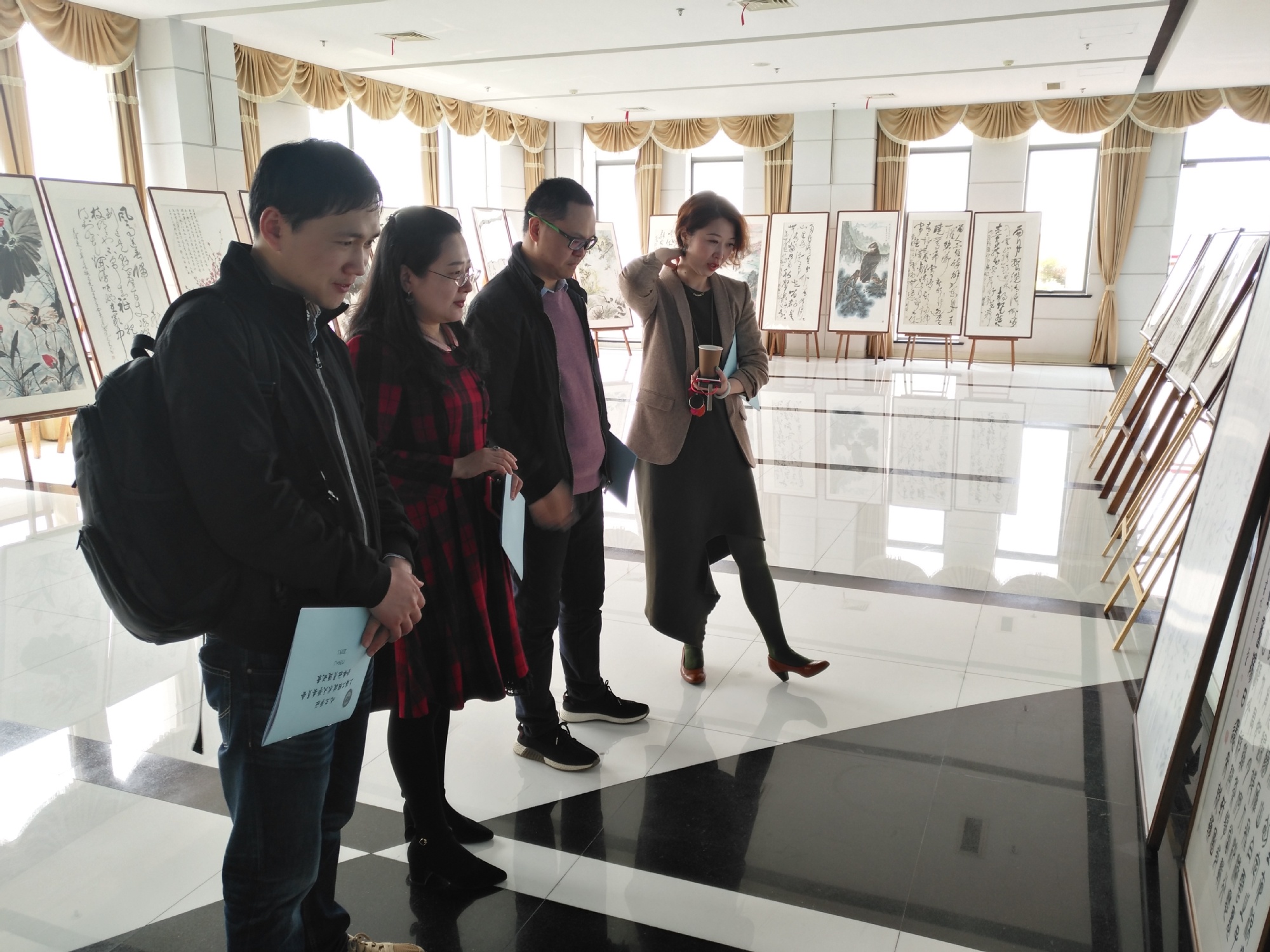 九三学社工程大委员会专题组织全体社员参观鉴赏。大家近距离欣赏书画艺术,感受传统文化的艺术魅力。大家在巡展作品前细细品味,读字读画意犹未尽。这些作品实在太美了,大家情不自禁地在作品前合影留念。
