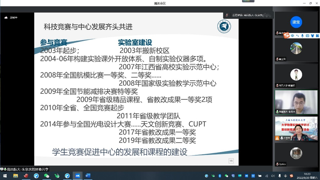 朱泉水副教授以“大学生科技竞赛与实验中心发展”为主题做了交流,介绍了南昌航空大学物理实验中心的概况以及学生竞赛的发展历程,重点分享了对参赛学生的选择和培养,以及实现以赛促教、以赛促学的发展模式。