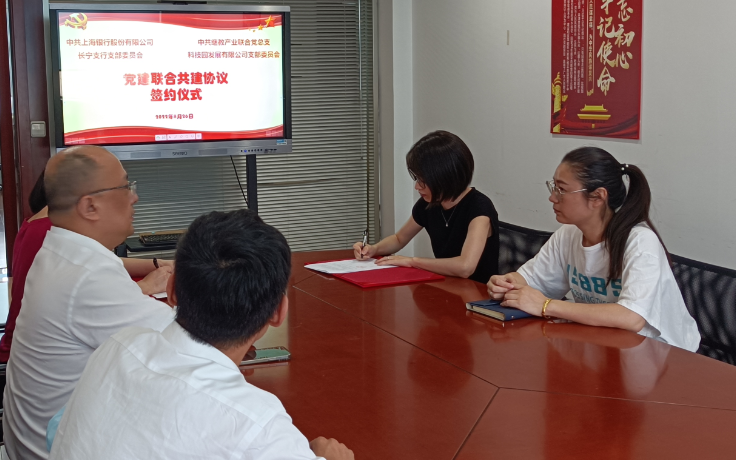8月26日上午,继教产业联合党总支科技园发展有限公司支部委员会与上海银行股份有限公司长宁支行支部委员会在长宁校区科创楼1118会议室签订《党建联合共建协议书》,上海银行长宁支行党支部书记张东欣与科技园发展有限公司党支部书记倪叶辉就进一步加强银企党建工作,深化党建工作内涵,推动银企合作步上新的台阶等方面内容展开了深入交流。