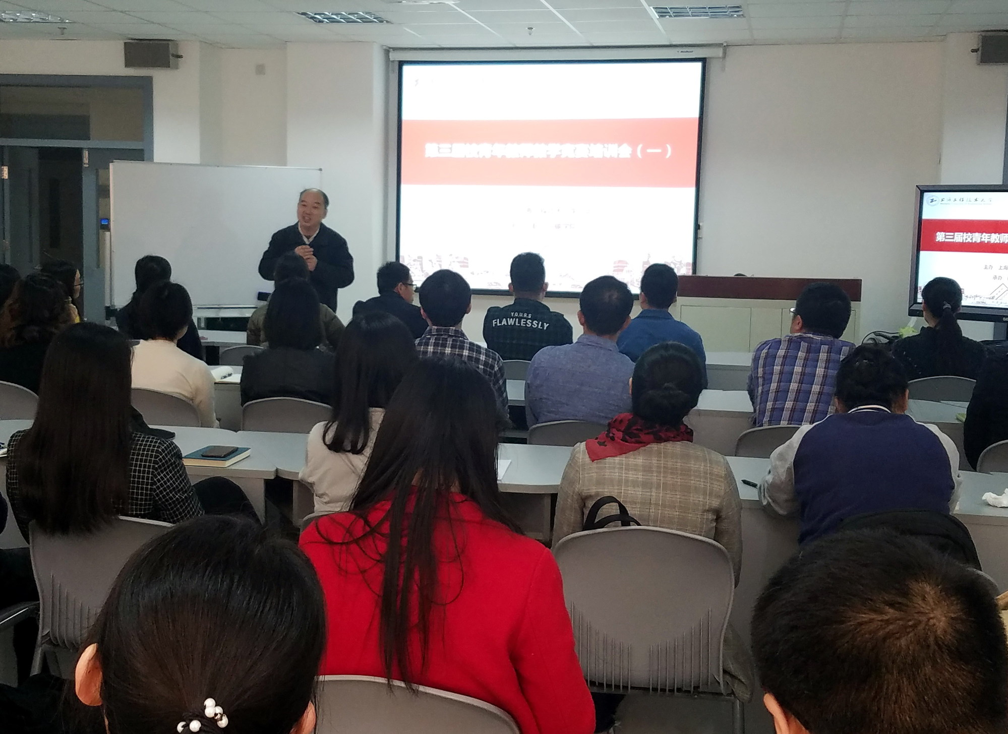 为进一步提升我校青年教师的教学能力水平,更好地迎接第三届校青年教师教学竞赛,4月12日下午,校工会联合航空运输学院/飞行学院在航飞楼6439举办第三届校青年教师教学竞赛赛前培训会,特邀我校2018年荣获上海高校青年教师教学竞赛二等奖获得者户国老师就“如何准备青教赛”开展专题辅导。校工会常务副主席柳如荣、副主席李霞、航空运输学院/飞行学院党总支书记虞蓉、院长何法江、副院长姚红光、副院长李程及各学院青年教师80余人参加。