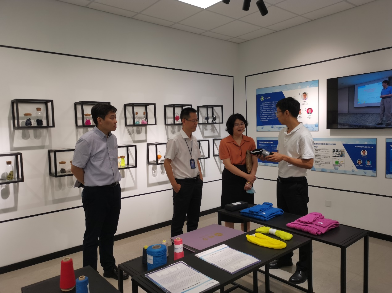 会前,朱晓青副书记、副校长参观了学院重点实验室,赴实训楼了解了上海纺织化学清洁生产工程技术研究中心、纤维材料研究中心等建设情况。