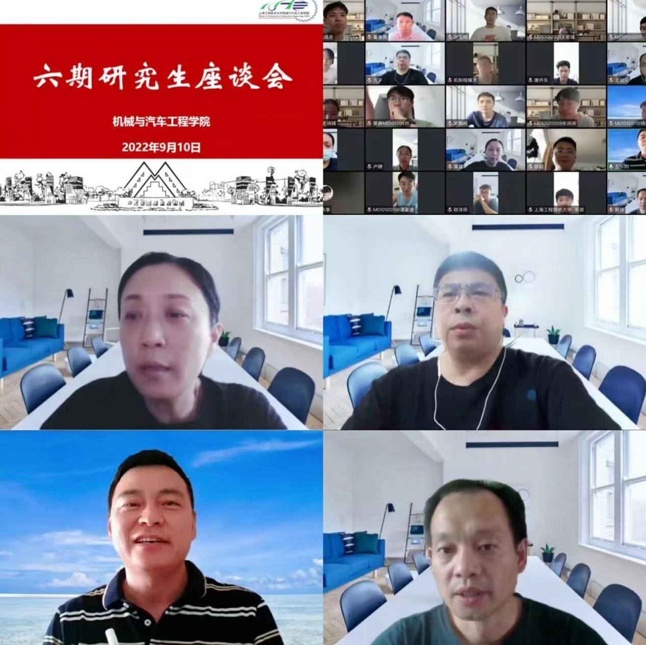 9月10日下午,机械与汽车工程学院召开线上座谈会,与同学们共叙中秋佳话,切实解决学生急难愁盼问题。学院党委书记虞蓉、院长方宇、副书记王东阳、副院长郭辉、研究生辅导员以及六期研究生代表参加座谈。