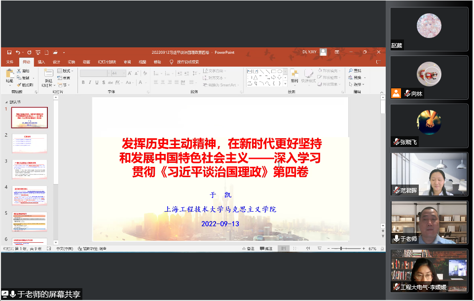 9月13日下午,电子电气工程学院党委中心组在线召开深入学习《习近平谈治国理政》第四卷专题扩大学习会。电气学院党委委员、党政领导、全体中层干部、思政教师代表等参加学习,特邀马克思主义学院副院长于凯教授出席学习会。会议由学院党委书记范君晖主持。