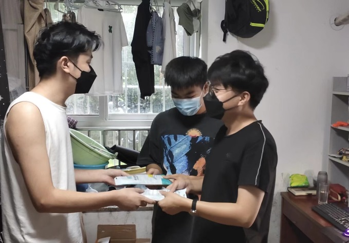 学院第一时间成立工作组,传达宣传防疫政策和手势,安排学办关心慰问,要求全体导师全覆盖关心关爱。9月8日,学院给六期在校全体研究生发放月饼,一个月饼,一份感动,一声关心,一份深情,让学生们感受到了学校的关心和温暖;导师全覆盖视频连线宣传防疫手势、全覆盖关心研究生生活和节庆安排;学办第一时间召开学工会议,研究六期疫情防控和关心关爱工作,第一时间派驻辅导员刘英男进入六期,坚守疫情防控第一线,以“抗疫如战、不辱使命”的决心意志,全身心投入到疫情防控工作中,同学倍感安全和安心。学办同时还建立六期在校研究生群解答各类问题,召开全体研究生会议贯彻落实疫情防控要求,召开党支部会议发挥党支部先锋模范作用,于9月13日发放校友和产学合作单位捐赠的口罩、纸巾,做好疫情防控下的心理辅导、困难生的帮扶。在学习方面,学院安排导师对研三学生的毕设中期检查和研二学生的毕设开题进行辅导,开通研究生国家奖学金和上海市奖学金线上提交材料和评审解答。