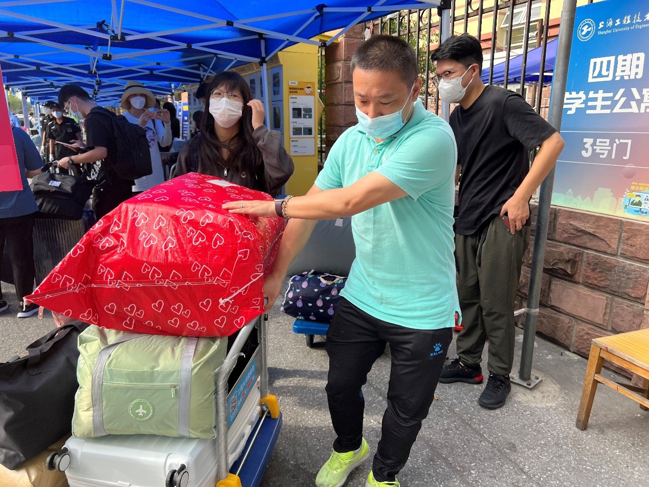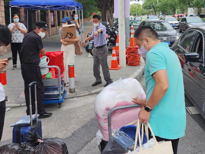 新生入校需向工作人员出示校园码,完成抗原检测后,由安保人员协助新生将行李送至宿舍区,进入学校迎新接待站。本次迎新工作保卫处采取分流管理服务,效率通行,规避拥堵,确保新生报到平稳有序。