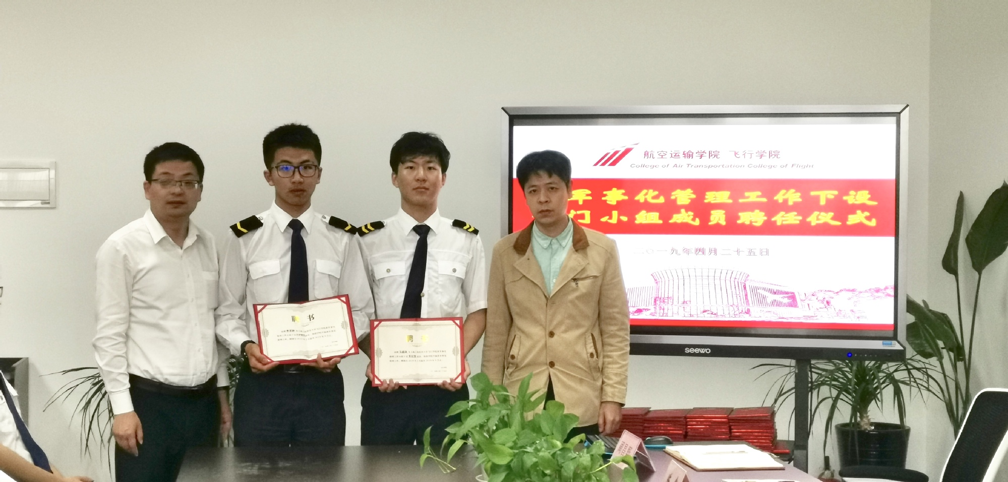 4月25日下午,飞行学院组织开展了准军事化管理工作第二次会议,会上举行了院工作小组下设职能部成员聘任仪式和工作交流,院准军事化管理工作小组全体成员和小组下设职能部全体成员出席本次会议。会议由院党总支副书记戴振华老师主持。