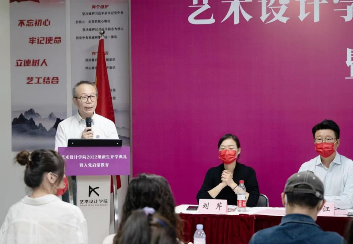 9月28日,艺术设计学院2022级新生开学典礼采用线上+线下的方式举行。艺术设计学院党委书记袁蓉,党委副书记、院长高瞩,党委副书记刘江,副院长李光安、刘芹,各系主任、全体新生班主任、全体辅导员和退伍军人专升本班全体同学参加活动。活动由艺术设计学院党委副书记刘江主持。