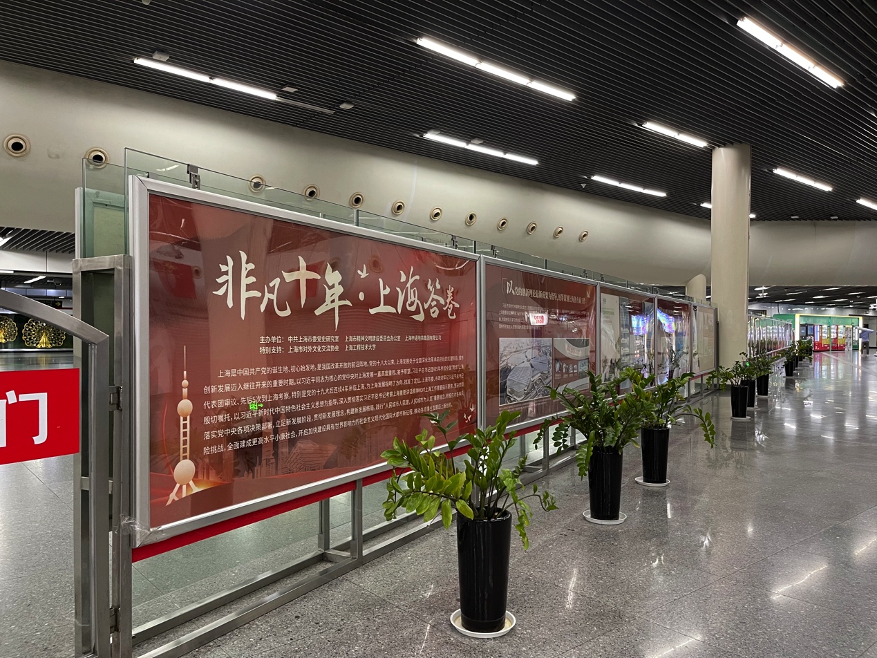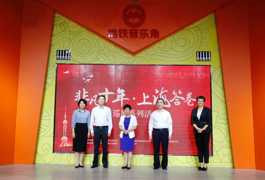 为展示党的十八大以来上海全力建设国际经济、金融、贸易、航运、科技创新中心,在持续增强城市硬实力的同时,全面提升城市软实力。9月29日,由中共上海市委党史研究室、上海市精神文明建设委员会办公室、上海申通地铁集团有限公司联合主办,上海市对外文化交流协会、上海工程技术大学特别支持的“非凡十年•上海答卷”巡展系列活动在人民广场地铁站音乐角正式启动,校党委副书记、副校长朱晓青应邀出席启动仪式。