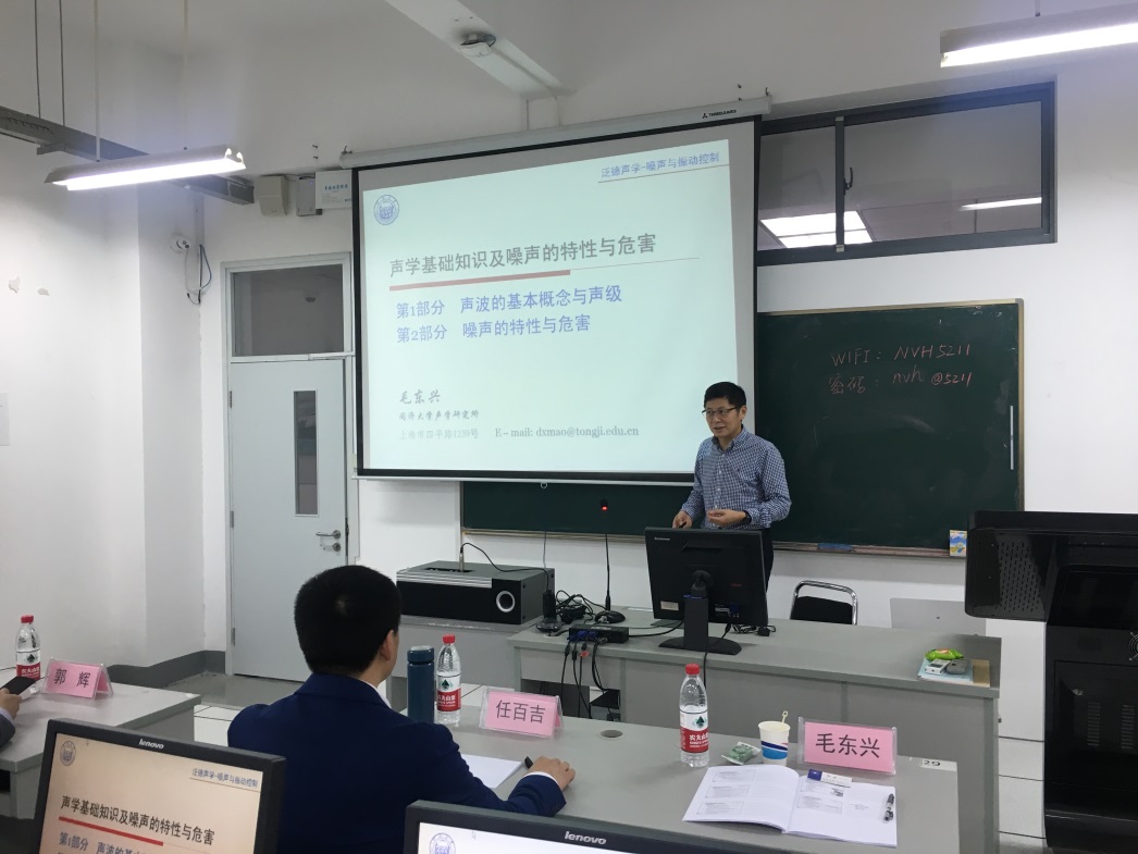 4月26日上午,上海泛德声学工程有限公司在上海工程技术大学机械与汽车工程学院举行第七期噪声与振动控制工程培训。培训讲师不仅有该公司总经理任百吉,工程师郑江、陈慧颖,还邀请到了同济大学教授、博导、声学研究所所长、中国声学学会副理事长毛东兴。上海工程技术大学教务处副处长、车辆NVH测控技术团队代表郭辉副教授代表学校为此次培训表示大力支持。