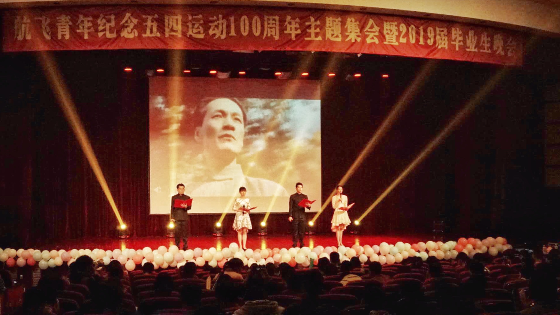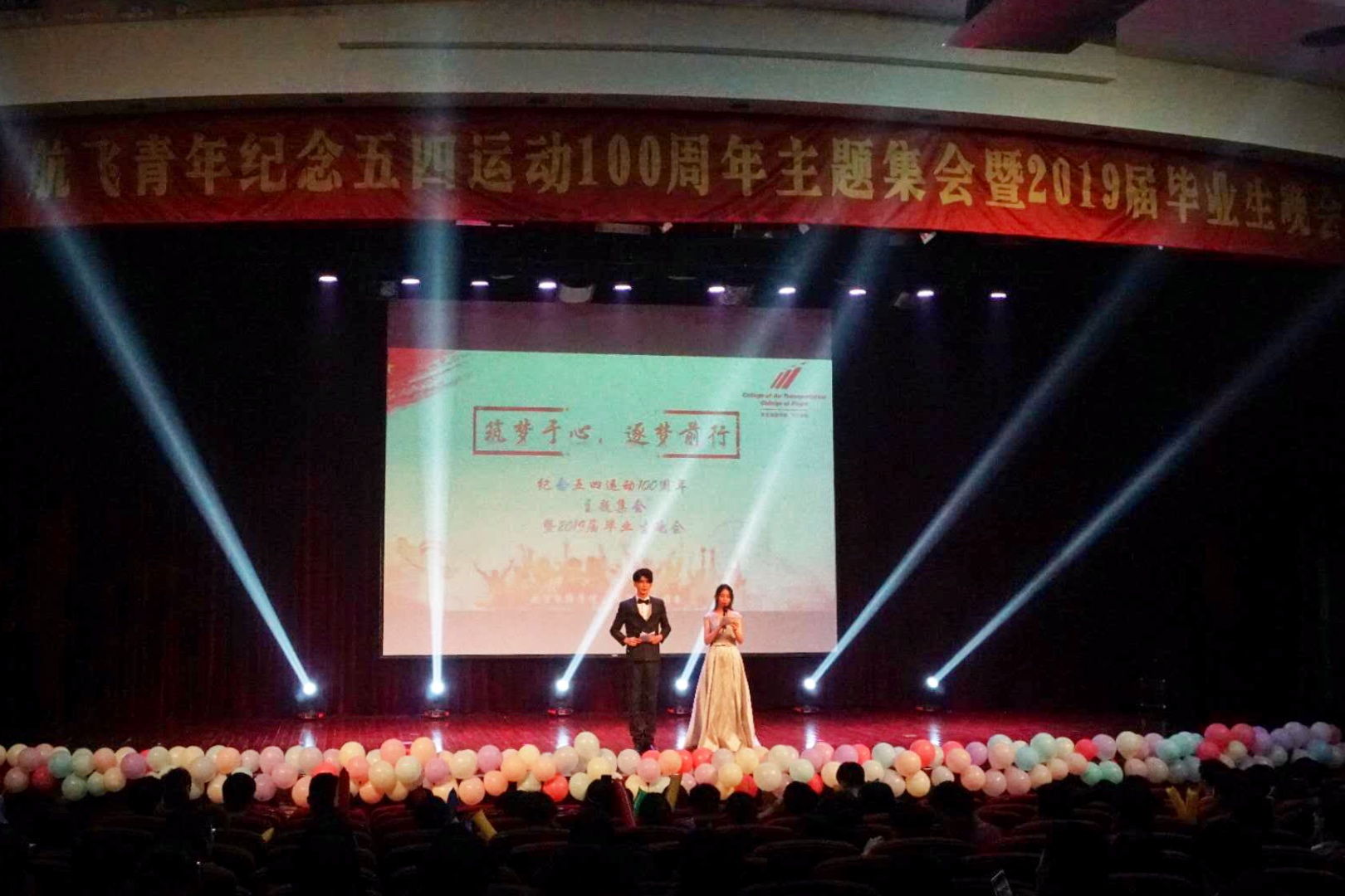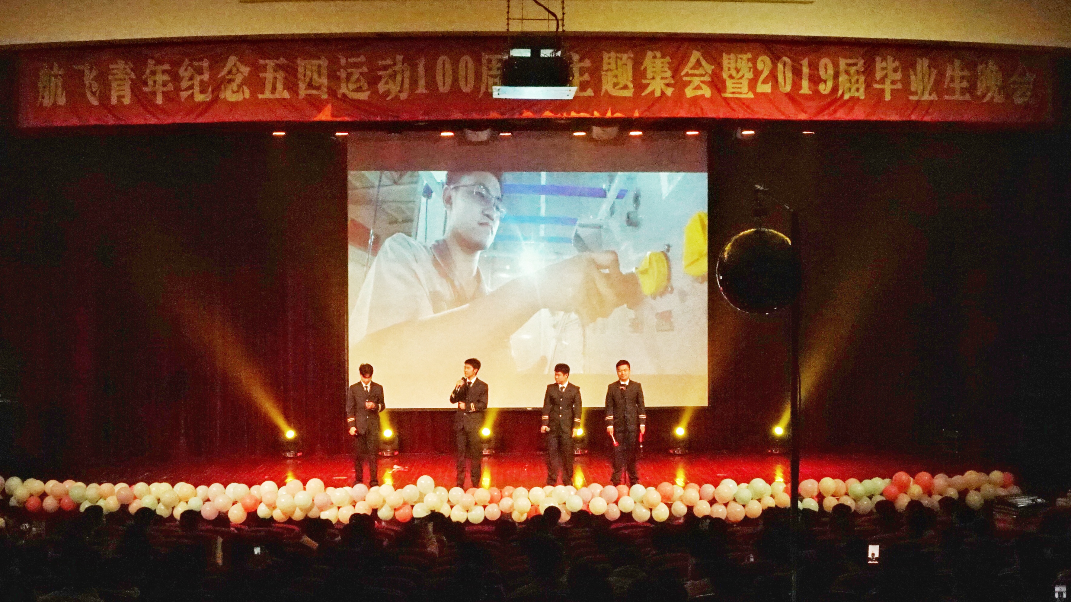 4月28日晚,航空运输学院/飞行学院“航飞青年纪念五四活动100周年主题集会暨2019届毕业生晚会”在志宏堂举行。航飞学院师生代表出席本次晚会,院党总支副书记戴振华代表学院为活动致辞,学办主任赵梦影代表教师为毕业生寄语。
