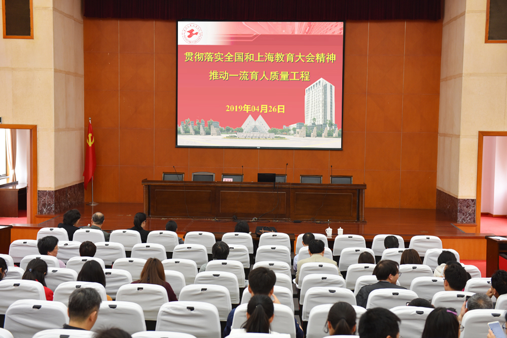 4月26日下午,为深入学习领会全国教育大会、上海市教育大会精神,贯彻习近平总书记在全国思想政治教育座谈会精神,围绕一流学院建设目标,落实立德树人根本任务,巩固教学基础地位和人才培养中心地位,促进教风、学风建设,持续提升教学质量,电子电气工程学院在行政楼B301召开“全面贯彻落实全国教育大会、上海市教育大会精神,推动一流育人质量工程”专题学习会,学院班子成员以及全院教师参加会议,会议由教学副院长刘瑾主持。