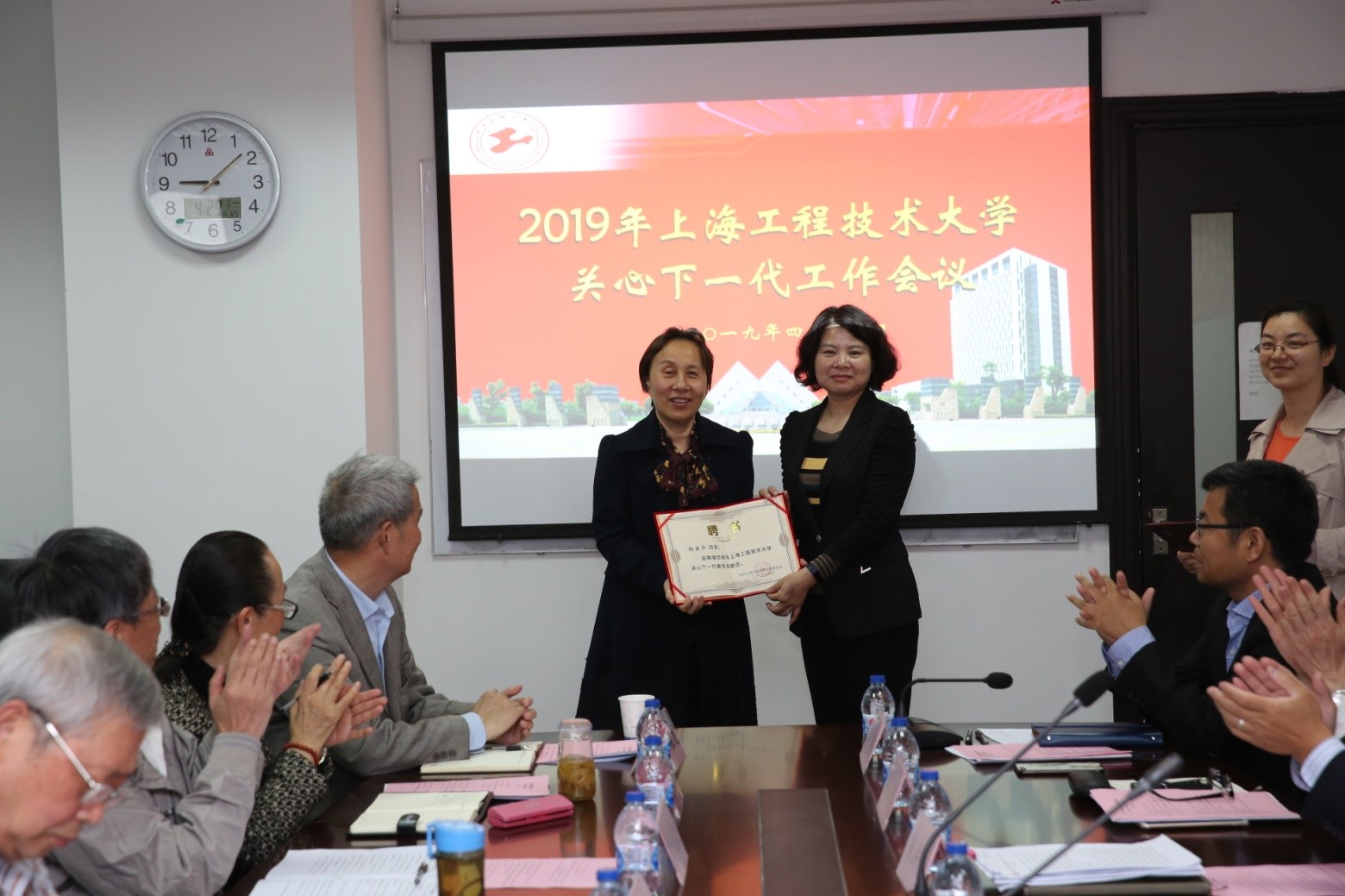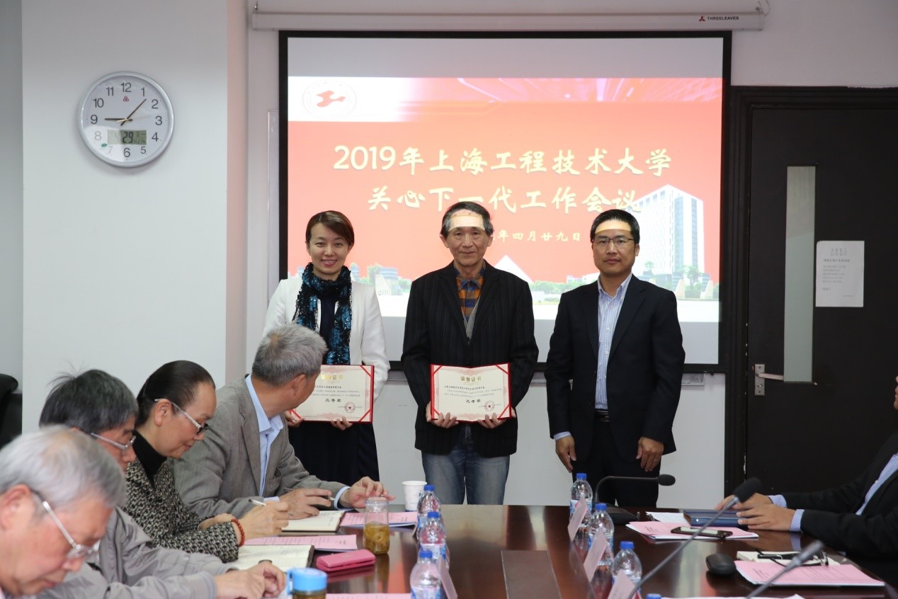 组织部部长朱洪春同志向荣获2018年上海市教育系统关心下一代工作“课题研究成果奖”三等奖的艺术设计学院和服装学院代表颁发了荣誉证书。