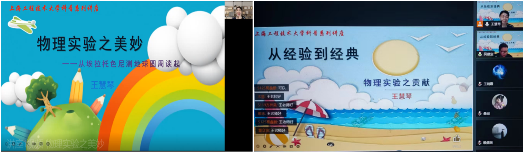 第一讲“物理实验之美妙——从埃拉托色尼测地球圆周谈起”于2022年6月25日晚拉开序幕,面向上海市的广大中小学生。讲座从物理界最强朋友圈讲起,激发了广大中小学生们的惊奇赞叹,共吸引了1093人线上围观听讲,现场氛围持续火爆,反应热烈,孩子们积极回应王慧琴教授的问题,并提出自己的疑问,点赞数达到12.4万。