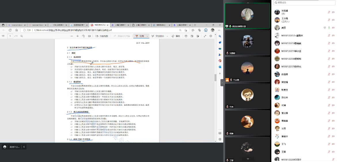 本次入学教育重点学习了《上海工程技术大学研究生学术道德行为规范管理条例》,会议中强调在学术研究和学术活动中须坚持以下原则:坚持实事求是的科学精神和严谨的治学态度,追求真理,自觉维护学术尊严和学者的声誉;遵守学术研究的基本规范,以知识创新和技术创新作为科学研究的直接目标和动力,把学术价值和创新性作为衡量学术水平的标准;在学术研究工作中坚持严肃认真、严谨细致、一丝不苟的科学态度,不得虚报科研成果,反对投机取巧、粗制滥造、盲目追求数量而不顾质量的浮躁作风和行为;对违反学术道德行为规范的行为要劝阻和制止,并敢于同不良学术风气作斗争;在校期间和毕业以后都要始终如一,自觉遵守学术道德行为规范和维护学校学术声誉。会议还针对近期科技部等二十二部门联合印发的《科研失信行为调查处理规则》进行了研学。