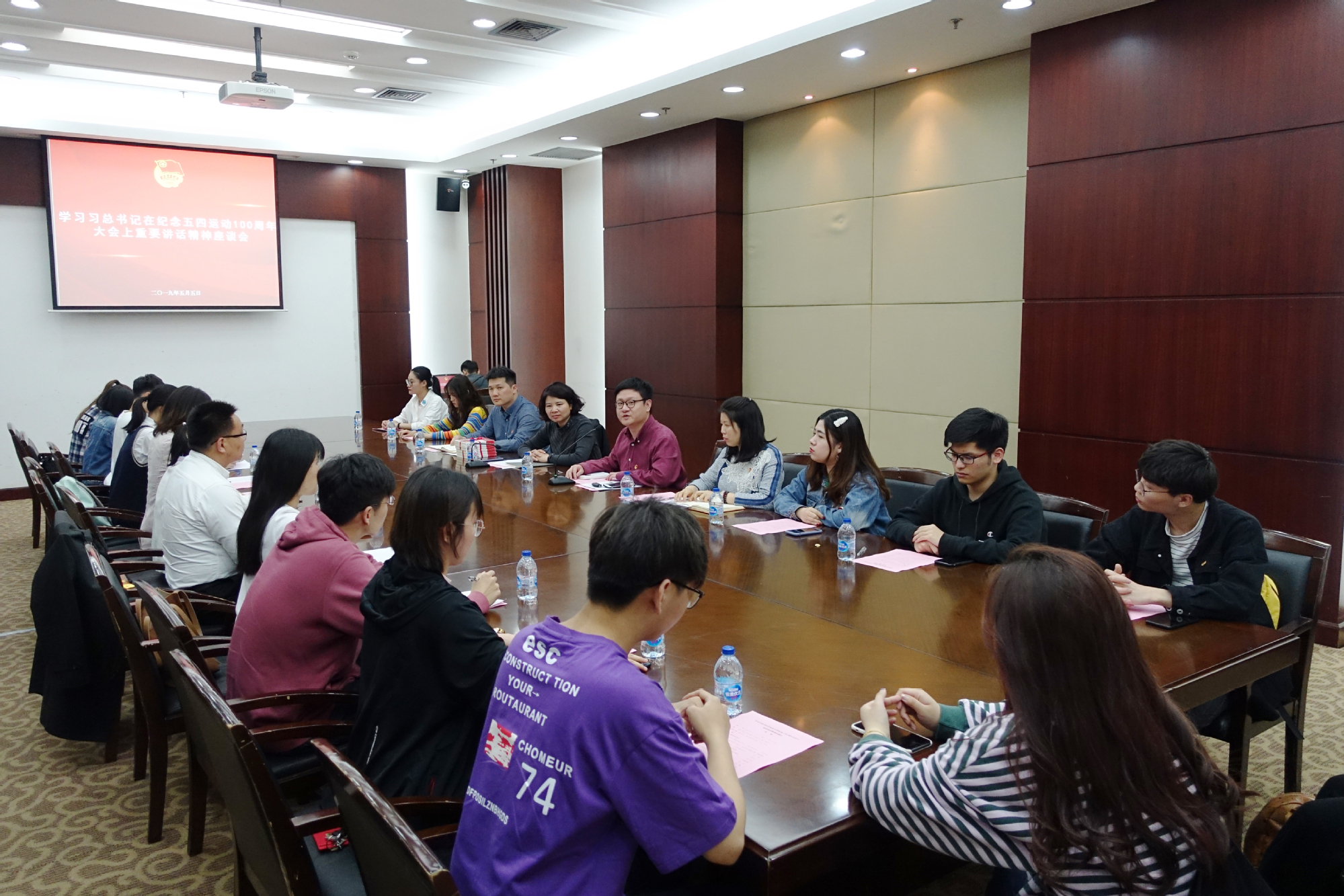 4月30日上午10时30分,纪念五四运动100周年大会在人民大会堂隆重举行,习近平总书记出席大会并发表重要讲话。5月5日下午,学习贯彻习近平总书记在纪念五四运动100周年大会重要讲话精神座谈会在松江校区图文信息中心第五报告厅召开。校党委副书记、副校长朱晓青与来自各学院的团干部及学生代表出席了会议。
