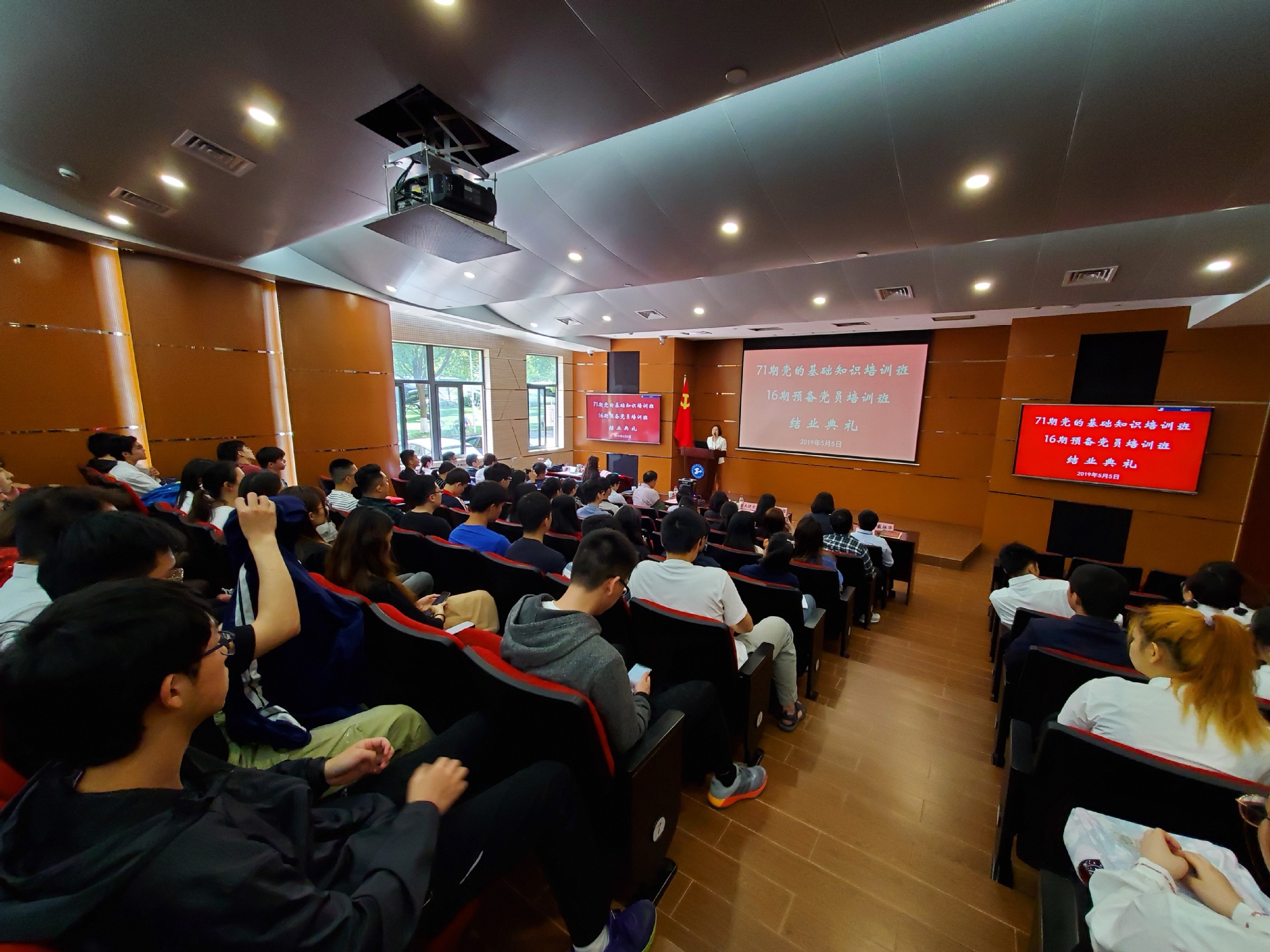 5月5日中午,由我校城市轨道交通学院、航空运输学院/飞行学院和社会科学学部联合承办的党校第二教学点71期党的基础知识培训班、16期预备党员培训班结业典礼在航飞楼报告厅举行。校党委副书记、副校长朱晓青,城市轨道交通学院党委书记柴晓冬,航空运输学院党总支书记虞蓉,社会科学学部党总支书记曹开云,校党委组织员熊伟,各学院副书记、组织员,71期党的基础知识培训班学员以及16期预备党员培训班学员出席本次活动。此次结业典礼由航空运输学院组织员陈巍巍主持。