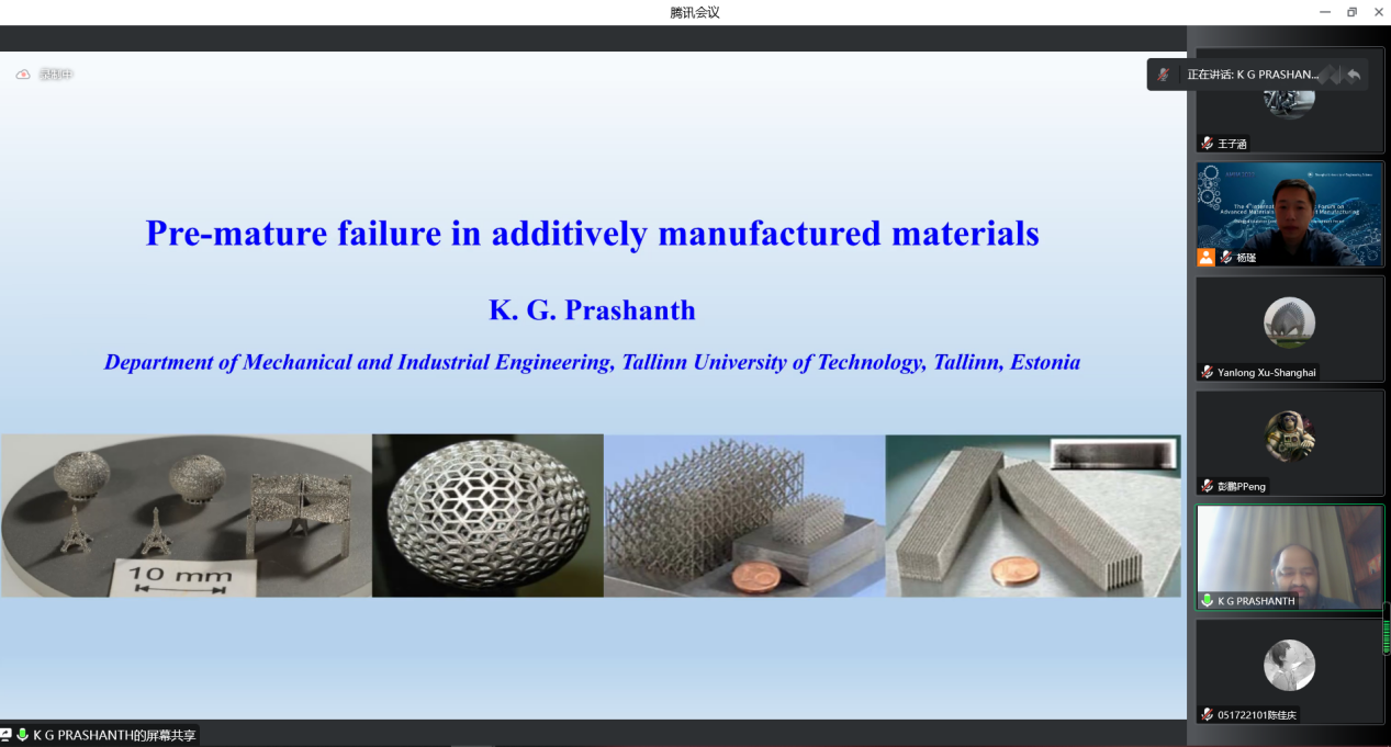 16日的分会场会议设置了两个线上平行分论坛,来自英国伦敦大学学院的Ivan P. Parkin院士和Paul R. Shearing教授、葡萄牙里斯本新大学的João Pedro Olivera教授、印度塔林理工大学的Prashanth Konda Gokuldoss教授、德国德累斯顿莱布尼茨固体与材料研究所的Konrad Kosiba教授等国内外专家共计21名报告人及参会嘉宾分别围绕先进材料和智能制造两方面的主题进行了深入、热烈的研讨。