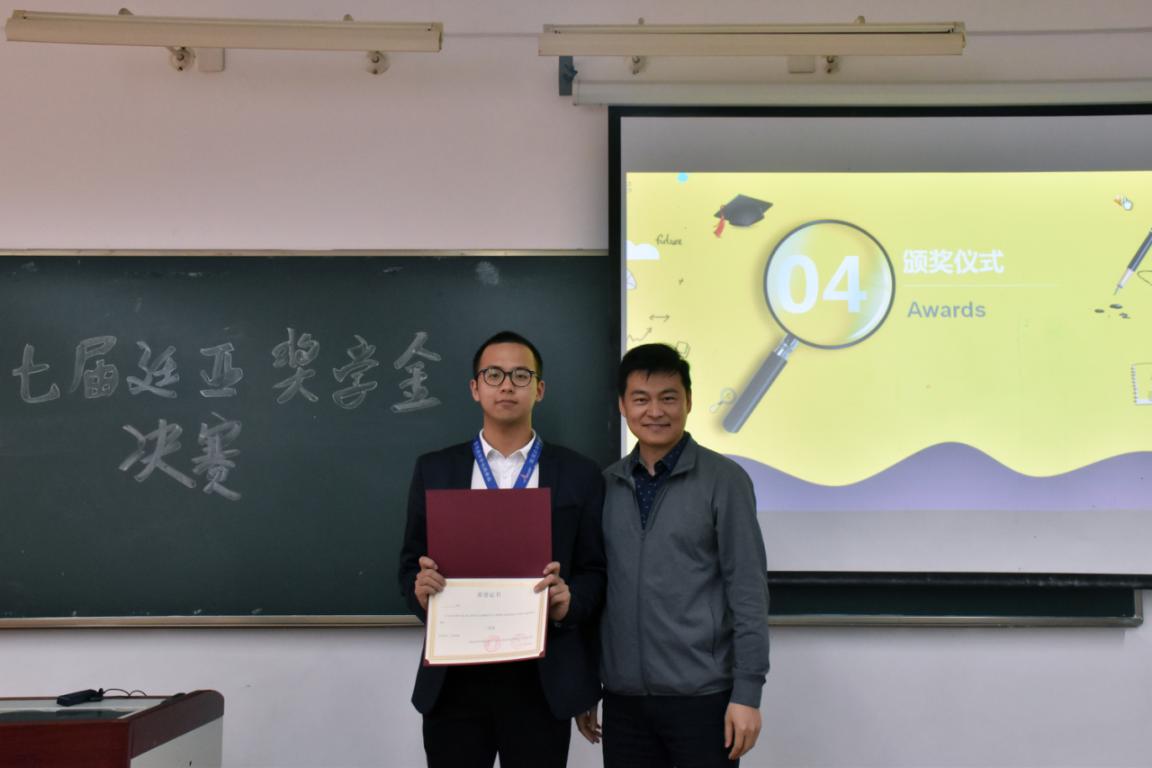 评选活动历时一个多月,分三个阶段进行。第一阶段,由学生自主报名,共有23名同学进入团队赛。第二阶段,由廷亚公司和辅导员通过无领导小组面试和情景模拟选出五名学生进行决赛。第三阶段,五名决赛选手分别通过“个人风采展示”、“即兴演讲”、“评委提问”三个环节全方位地展现他们的成长历程和收获,呈现一场精彩纷呈的盛宴。个人展示环节,同学们通过PPT阐释自己的学习、工作、科创等方面成绩;即兴答辩囊括大数据、知识产权保护、996、疫苗造假等当前热门话题;评委提问环节中,各位选手从容不迫,对答如流,他们的精彩表现赢得了现场师生的阵阵掌声。经过激烈的比赛和严格的评审,活动评选出第七届“廷亚奖学金”一、二、三等奖和优胜奖,评委现场为获奖同学颁奖。