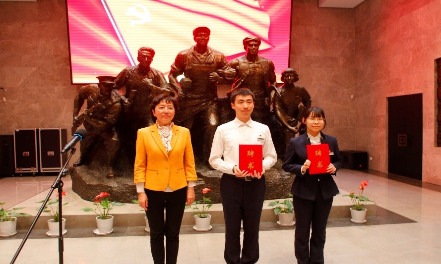党校(第四教学点)聘请中共四大纪念馆为我校学生悉心指导党史知识的朱毅超和王力两名同志为党建育人导师,高职学院党委沈海庆书记代表党校教学点为两位党建育人导师颁发了聘书。党建育人导师将定期对党校学员进行党史理论知识和党史讲解技巧的指导,充分发挥榜样引领作用,使学员进一步加深党性认识,提高思想觉悟。