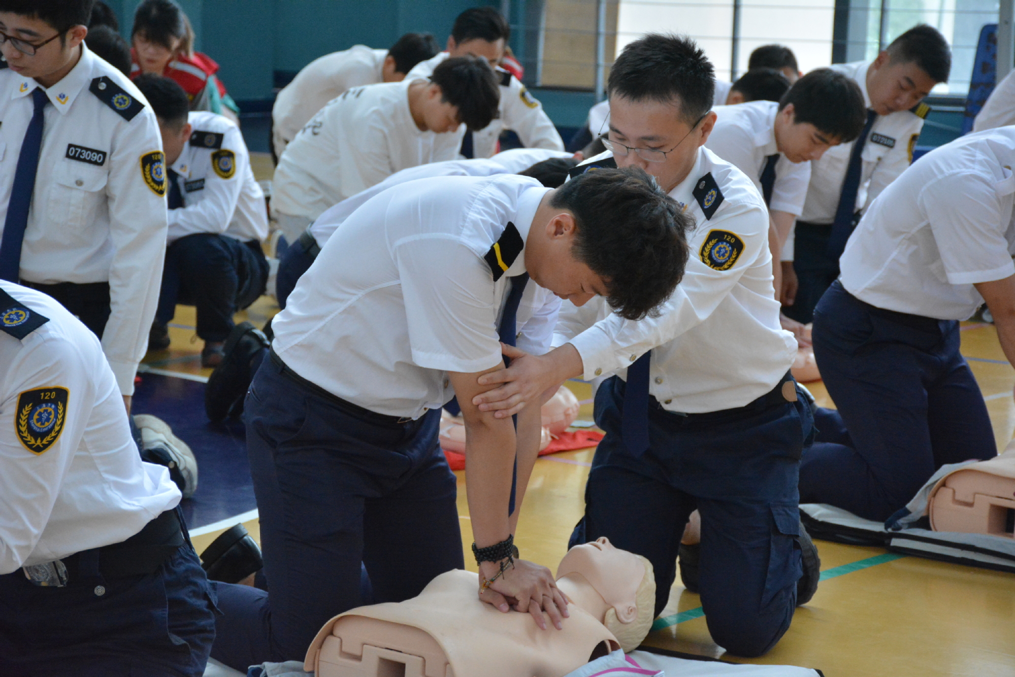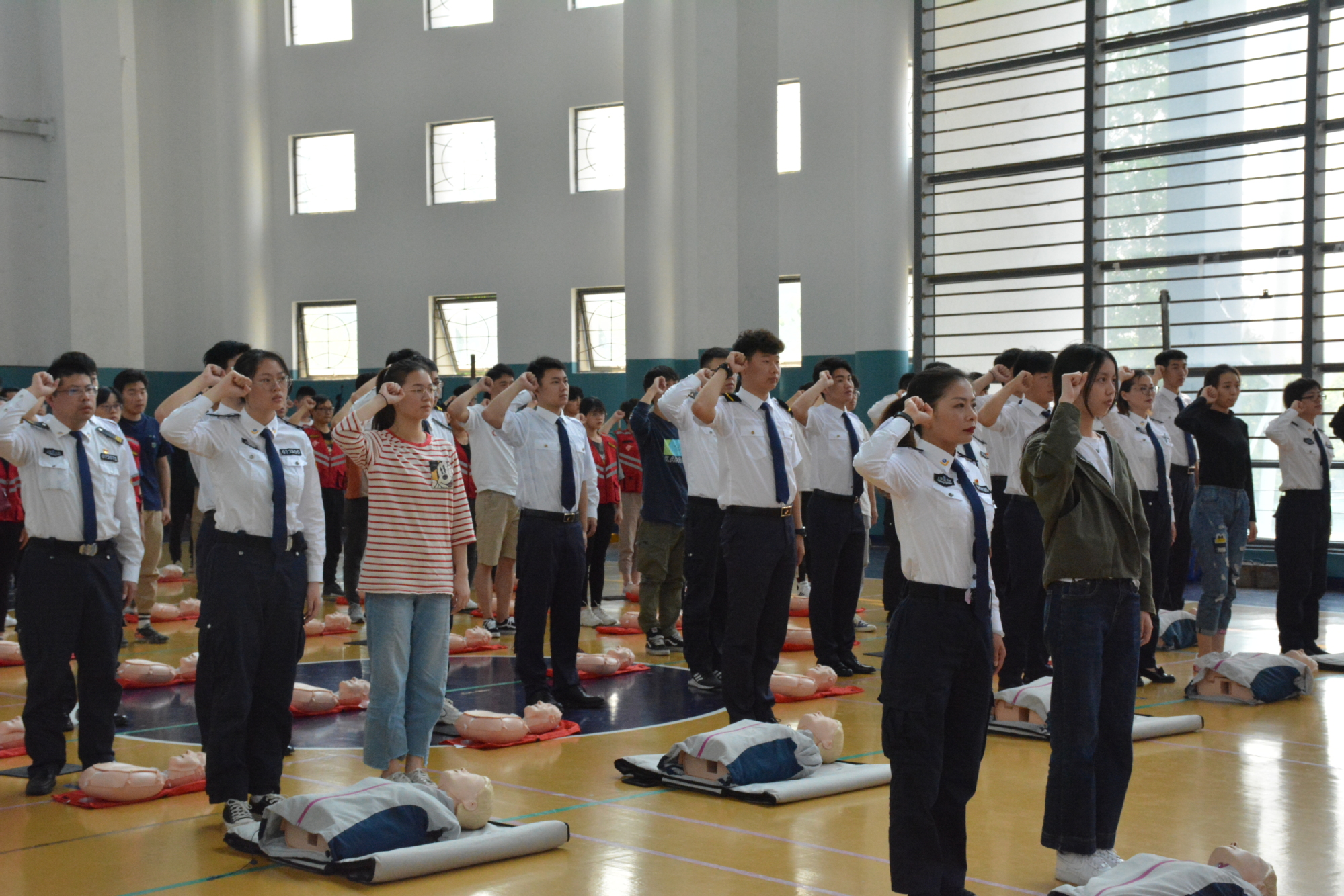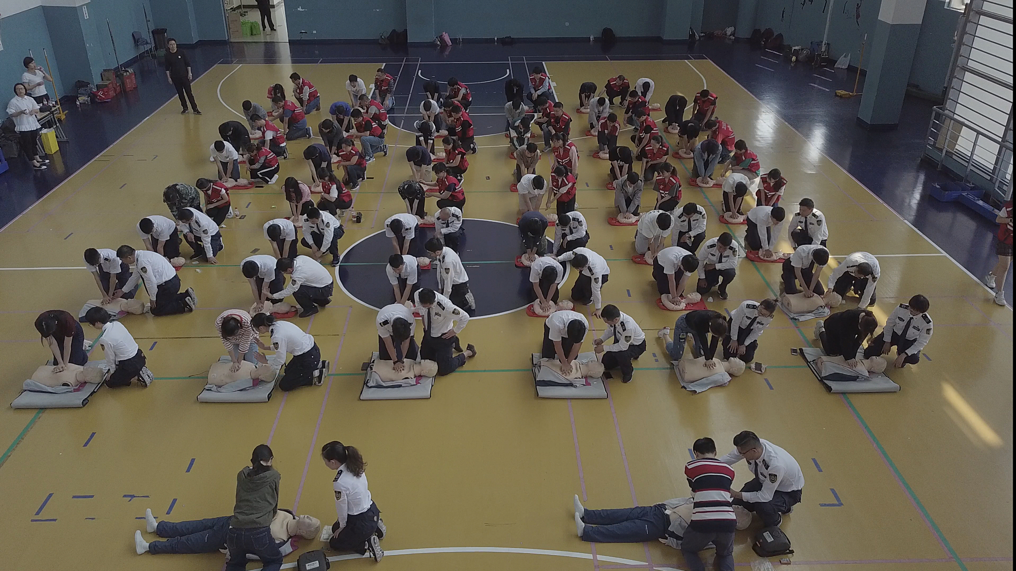 50余名医疗急救志愿者现场同时操作CPR,50余名大学生现场学习演练心肺复苏及气道异物梗阻处置等急救技能,教与学相得益彰,现场满满的收获感和自豪感。这一幕于5月12日上午在上海工程技术大学松江校区体育馆精彩上演。