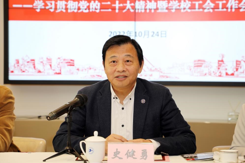 校党委副书记、工会主席史健勇就学习宣传贯彻党的二十大精神对工会干部提出要求。他强调,要充分发挥政治组织作用,当好二十大精神的宣传员。要认真组织学习,坚持“原汁原味”学原文、悟原理,认真研读党的二十大报告;要注重示范引领,坚持以上率下,充分发挥宣传员作用,带头学习宣传党的二十大报告,让工会干部听得懂、能领会、可落实。要充分发挥桥梁纽带作用,做好学校发展的助推员。要围绕学校中心工作,紧密联系实际工作,用党的二十大报告指导工作,坚持学用结合、学以致用,统筹推进好工会各项事业的稳步发展,盯紧落实,推动党的二十大精神学习在工会落地生效。及早谋划今后的工作思路、主要任务和具体措施,增强工作主动性和创造性,努力实现学校发展良好局面。要充分发挥群众团体作用,做好广大教职工的娘家人。新征程上,我们要始终坚持一切为了人民、一切依靠人民。前进道路上,无论是风高浪急还是惊涛骇浪,人民永远是我们最坚实的依托、最强大的底气。我们要始终与人民风雨同舟、与人民心心相印,想人民之所想,行人民之所嘱,不断把人民对美好生活的向往变为现实。