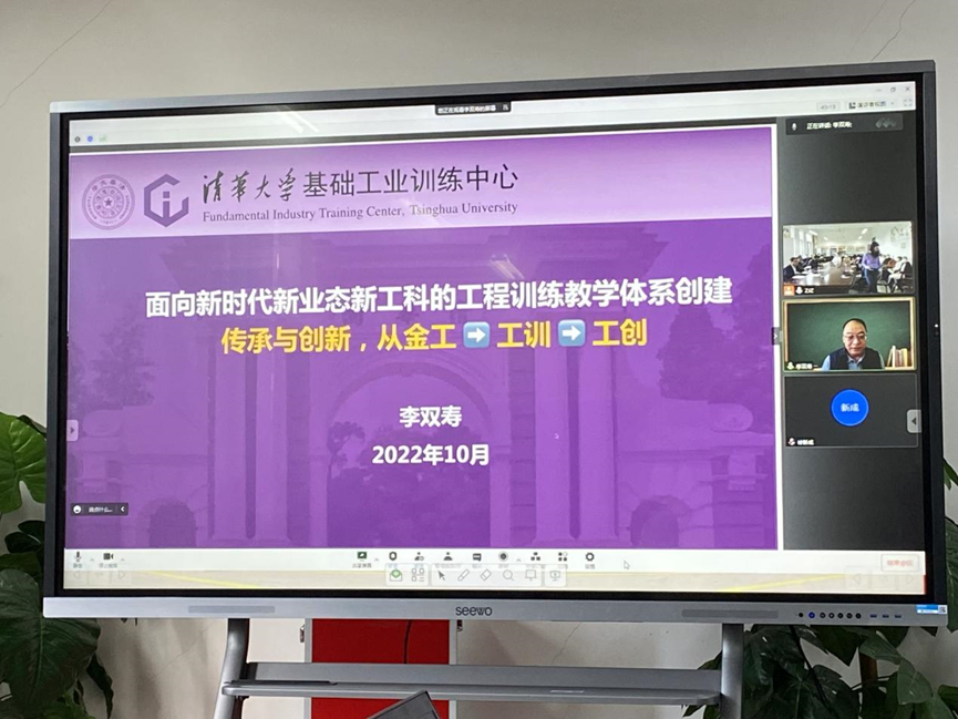 10月18日下午,工程训练中心邀请清华大学基础工业训练中心主任李双寿教授通过线上会议的形式做题为“面向新时代新业态新工科的工程训练教学体系创建传承与创新,从金工→工训→工创”的专题报告。工程训练中心全体教职员工现场参加报告会。报告会由工程训练中心主任陈浩主持。