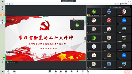 学习宣传贯彻党的二十大精神是一项非常重要的政治工作,数理外国语联合党委将积极推进落实,坚决把二十大精神武装到头脑里,把二十大精神落实到工作中。