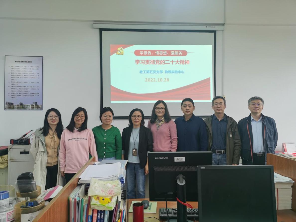 教工第五党支部在2号实训楼2209室开展“学报告、悟思想、强服务”专题组织生活。党支部书记余枭然带领支部党员和部分物理实验中心教师一起学习党的二十大报告。支部党员和教师一致表示,一定要认真学习习近平总书记的二十大报告,在教学工作中主动学习宣传贯彻党的二十大精神,在实现中华民族伟大复兴的征程上,更好担负起为党育人、为国育才的使命和责任。