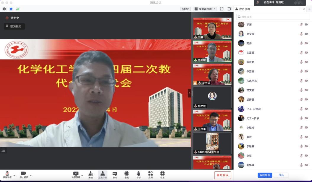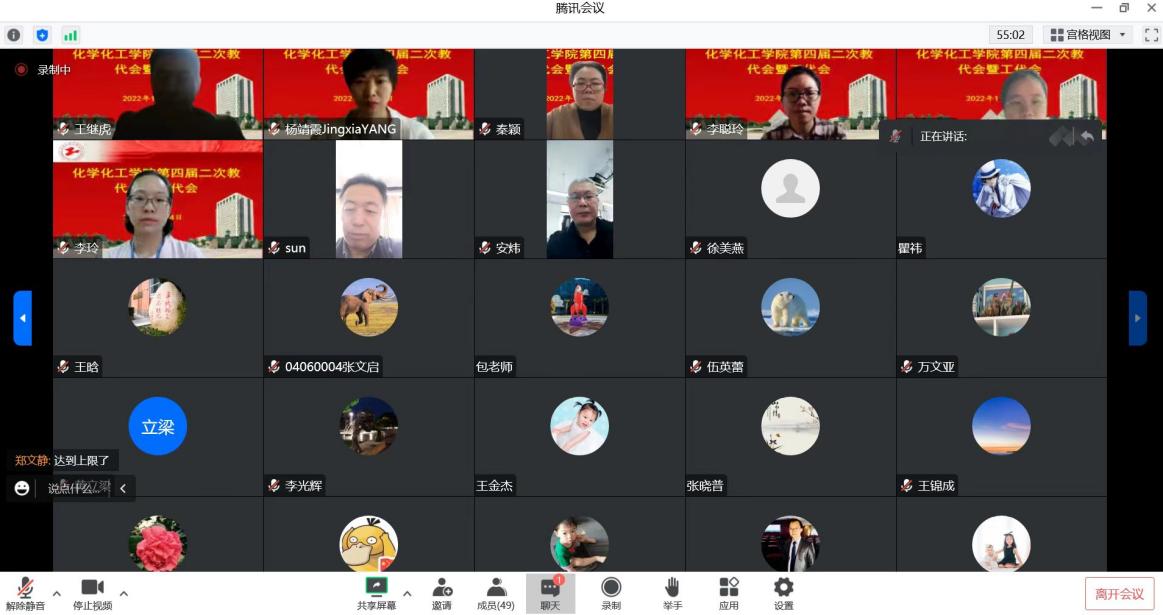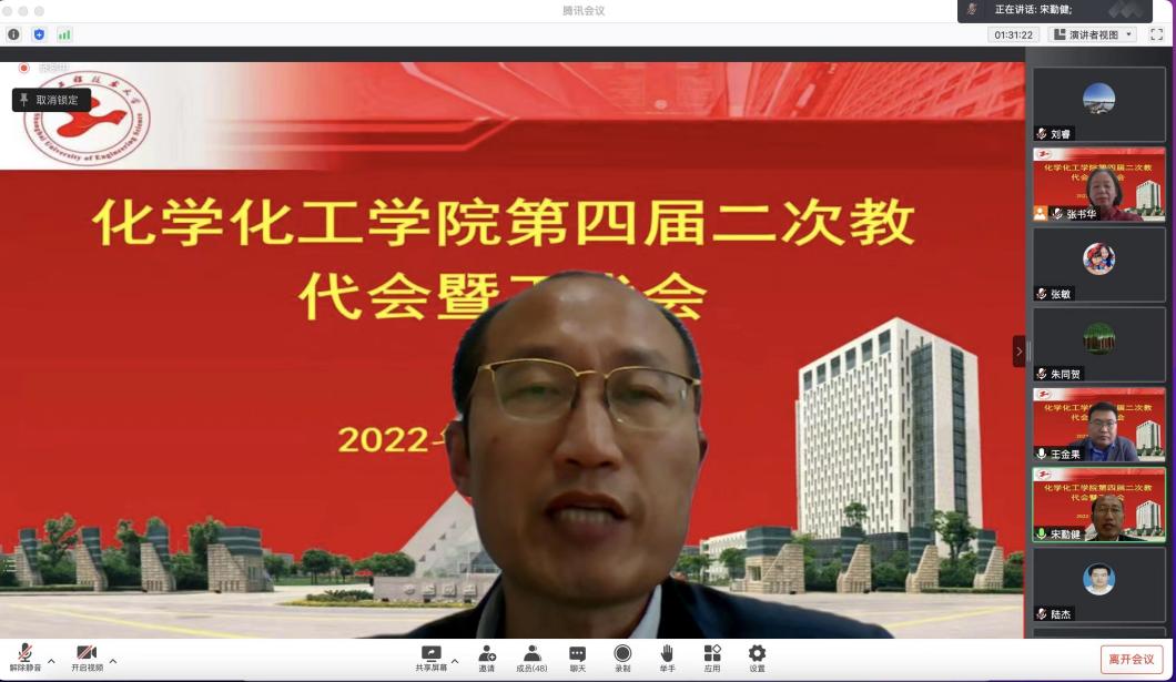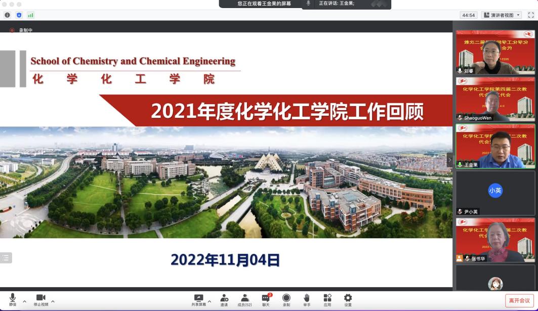 11月4日,化学化工学院第四届二次教代会暨工代会在线召开。校工会副主席张鹏出席开幕式,在全体与会代表的共同努力下,会议圆满完成了各项预定任务。
