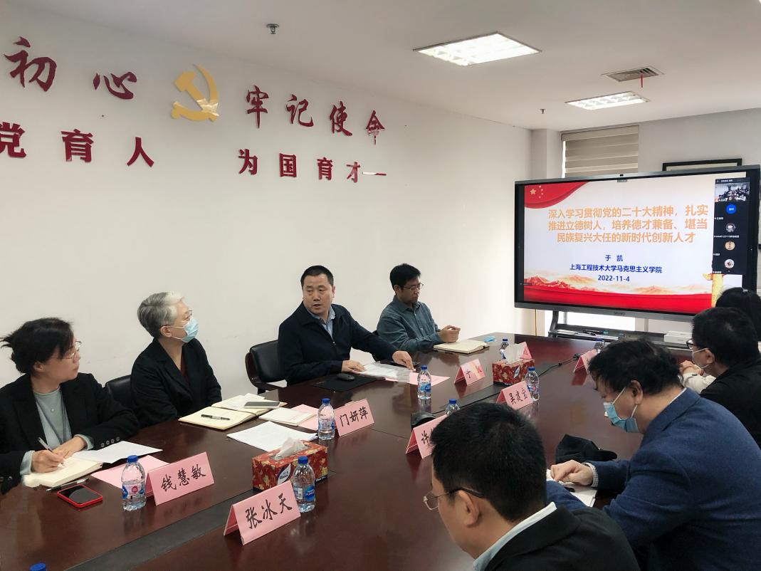 为进一步贯彻中共中央关于认真学习宣传贯彻党的二十大精神的决定,11月4日,数理外国语联合党委邀请马克思主义学院副院长于凯教授作党的二十大精神专题辅导报告。校党委副书记门妍萍出席报告会。辅导报告会线下会场设在行政楼1308,通过腾讯会议向数理与统计学院、外国语学院全体教师和部分党校第一教学点的党支部书记在线直播。校党委副书记、纪委书记门妍萍,学院党政班子成员、部分党支部书记、系部主任、教师代表线下参加了辅导报告会。辅导报告会由数理外国语联合党委书记钱慧敏主持。