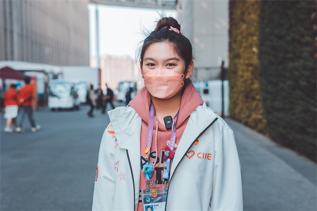 来自上海工程技术大学管理学院的黄倩仪是一名研一新生,也是一名少数民族学生党员。从第一届起,进博会就成了她的每年金秋之约。