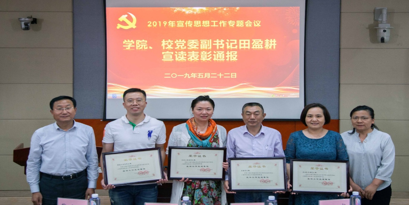 田盈耕副书记宣读了《2018年度宣传工作先进集体和优秀个人表彰的通知》,党委副书记田盈耕、李云先为受表彰的先进集体与个人颁奖。2018年度,在学院、校党委领导下,各党支部和广大通讯员积极报送新闻信息,大力宣传学院、校工作成功经验和先进事迹,营造了团结奋进、开拓创新、乘势快上的良好舆论氛围,提高了组织凝聚力、扩大了社会影响。