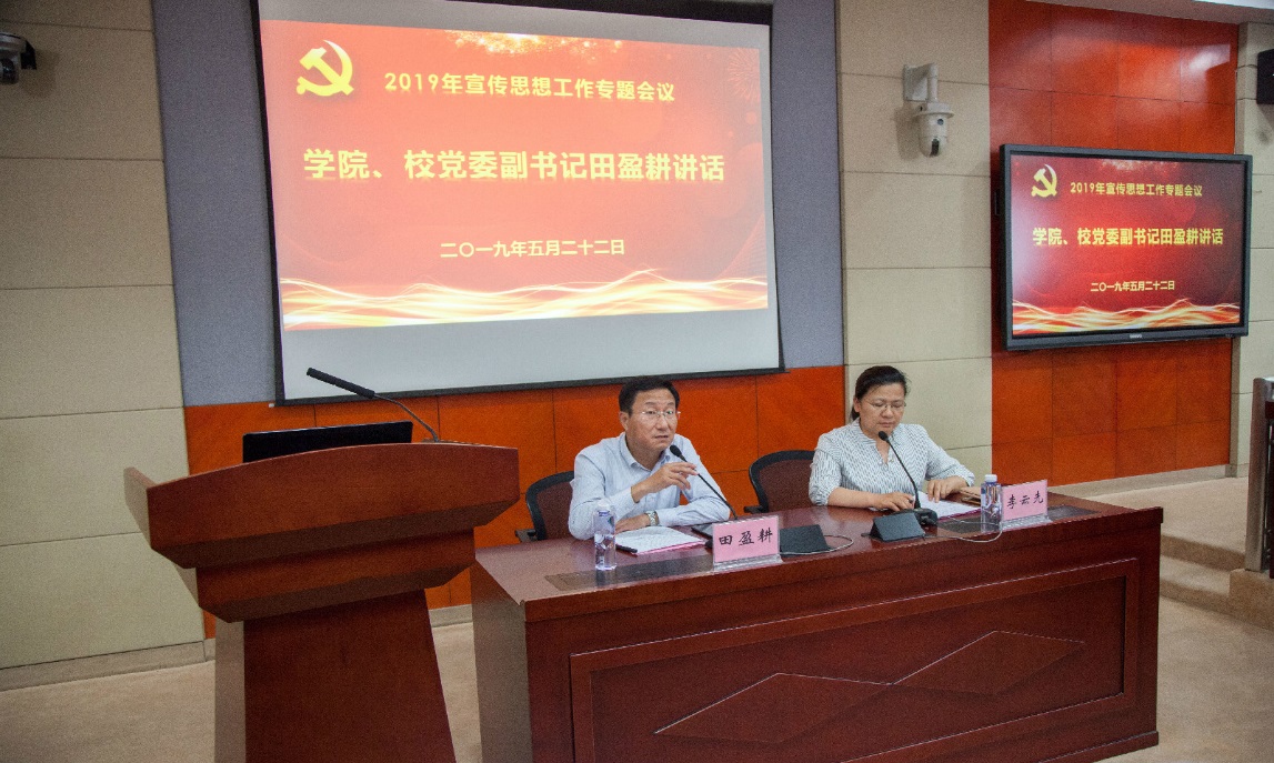 会上,党办徐萍主任作《2019年度宣传工作设想》,2019年宣传思想工作的主线是认真学习习近平总书记在全国宣传思想工作会议上的讲话精神,贯彻落实上级党委、院校党委对宣传思想工作的要求,紧紧围绕“立德树人”这条工作主线,自觉担当起举旗帜、聚民心、育新人、兴文化、展形象的使命任务,对标全面从严治党目标责任,将宣传思想工作与学院、校的中心工作紧密融合,加强舆论导向,唱响主旋律,弘扬正能量,并介绍了七方面的主要工作。党办章海荣介绍了2018年学院、校宣传思想工作总结。受表彰的师生代表刘晓莉和程梦媛分别作了交流发言。