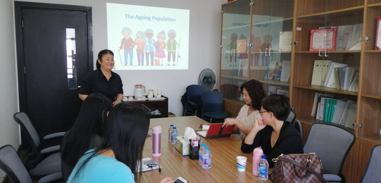 王萍老师首先对顾老师专程在赛前为学院教师做指导、交流表示欢迎和感谢。顾秋蓓老师是上海市“五一”劳动奖章得主、上海市教学能手,曾获得第二届上海市青教赛特等奖,第三届“外教社杯”全国高校外语教学大赛上海赛区特等奖。