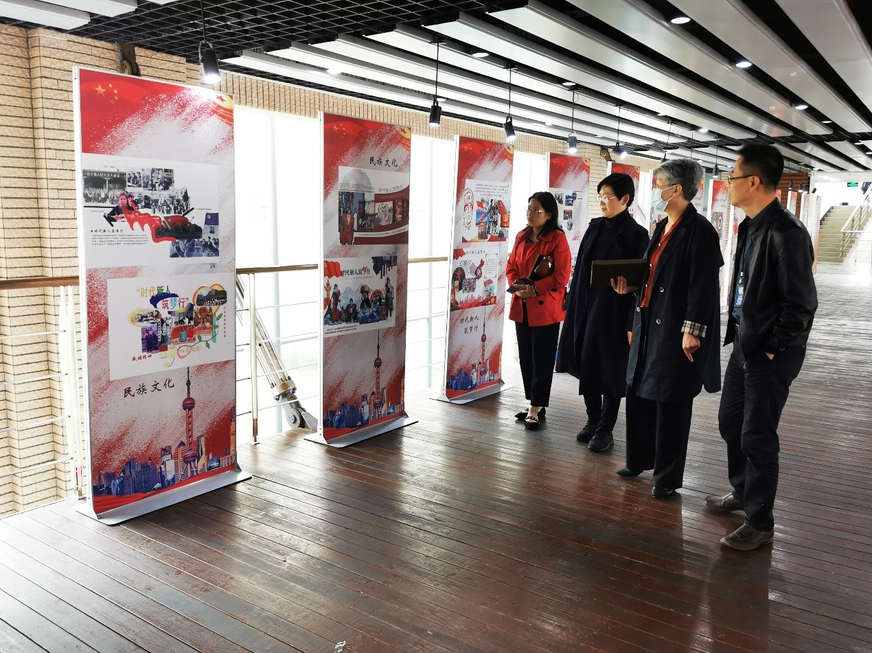 会前,门书记一行还仔细观看了学院关于“发现民族精神 感应时代脉搏”“由军服变迁绎百年党史”等特色课程思政建设成果展,肯定了纺织服装学院在课程思政建设方面特色鲜明、优势突出。