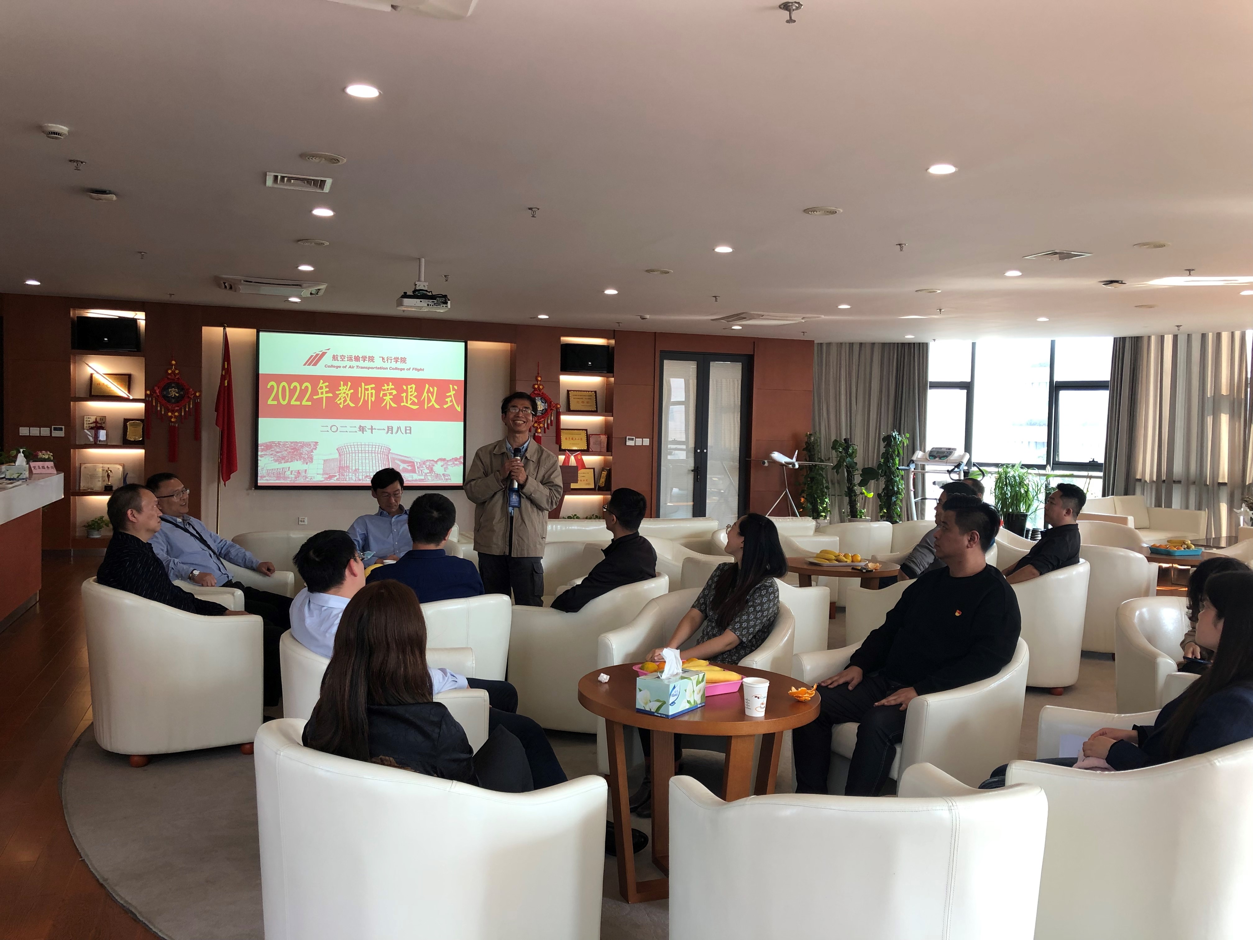 11月8日下午,航空运输学院(飞行学院)为新退休教师陈闵叶教授举行了温暖的荣退仪式。学院党政领导、各系室教师代表、新进教师代表等参加了活动。