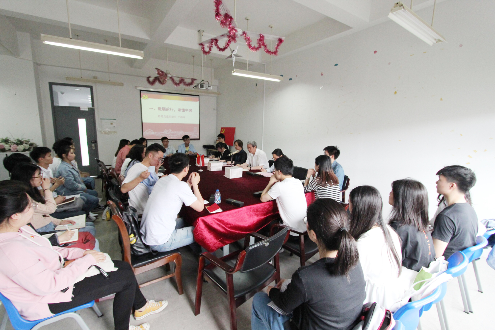 值此毕业之际,为做好青年党员教育管理工作、增强毕业生党员党性修养,化学化工学院党委于 5月30日中午在实训楼4403会议室开展了2019届毕业生党员离校教育。学院党委书记刘宇虹、特邀党建组织员卢柏龙老师、党委副书记熊筱晶、组织员郑晓昱和全体毕业生党员参加本次会议,会议由党委副书记熊筱晶主持。