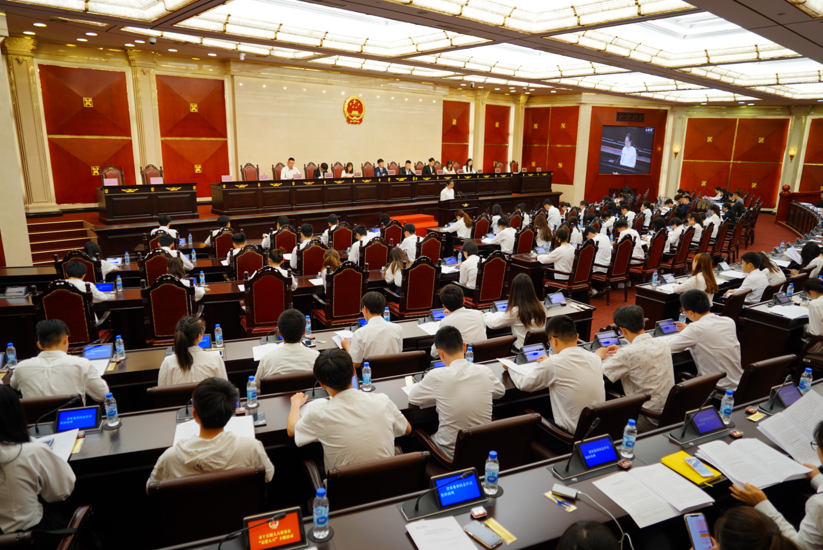 同学们最期待的活动是师生现场模拟召开市人大常委会。模拟常委会讨论《上海市旅游条例修正案(草案)》的议案,在整个过程中,所有参与的同学身着正装,以常委会委员的身份坐在各自的席位上,围绕着主题内容及修正方案进行讨论。师生们结合自身的专业以及生活中的点点滴滴发表了各自的真知灼见,学院党员教师代表吴菁老师、党员学生代表吕玉同学在会上发言,在上海市旅游资源、旅游市场秩序、保障旅游者和旅游经营者的合法权等方面阐述了各自的观点。讨论发言结束后,委员们现场进行表决,模拟环节顺利结束。