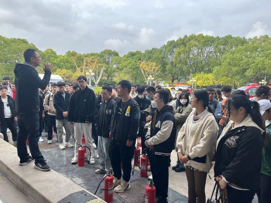 学院还组织学生在体育馆西侧进行了灭火器演练,保卫处吴挺老师详细讲解了灭火器的操作规程,带领学生进行了实操演练。进一步丰富了学生的消防安全知识储备,强化了应急救援能力,提高了学生面对突发事件的安全自救素质。