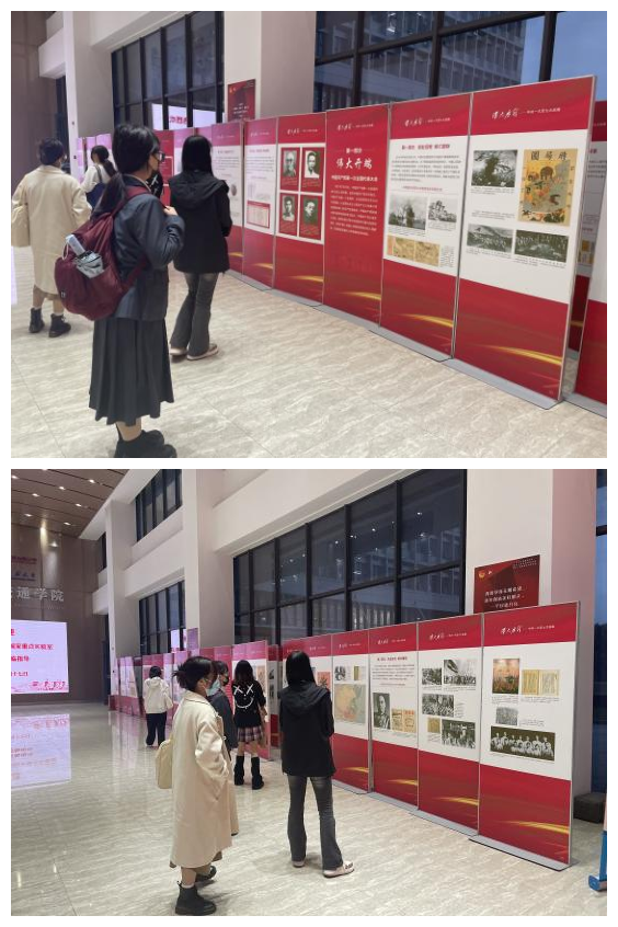 座谈会前,学院组织部分学生代表前往现代交通大楼参观“中共一大到七大巡展”,从党史中汲取奋进力量。