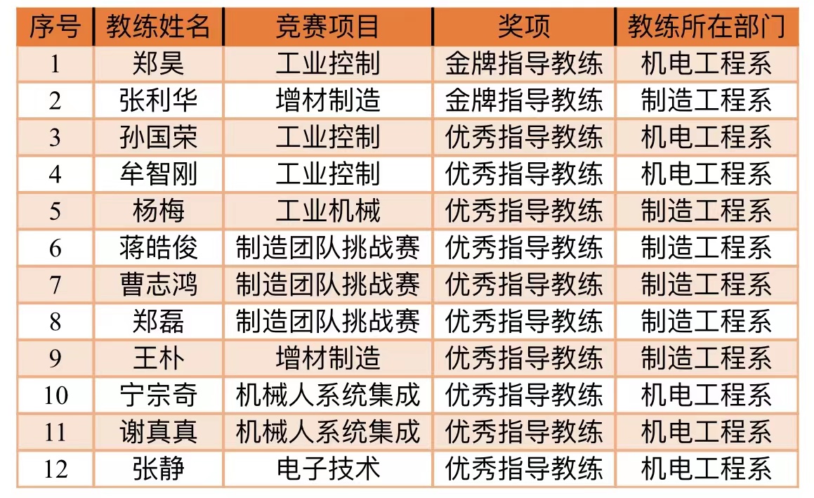 第二届全国技能大赛上海市选拔赛(世赛选拔项目)教练获奖名单