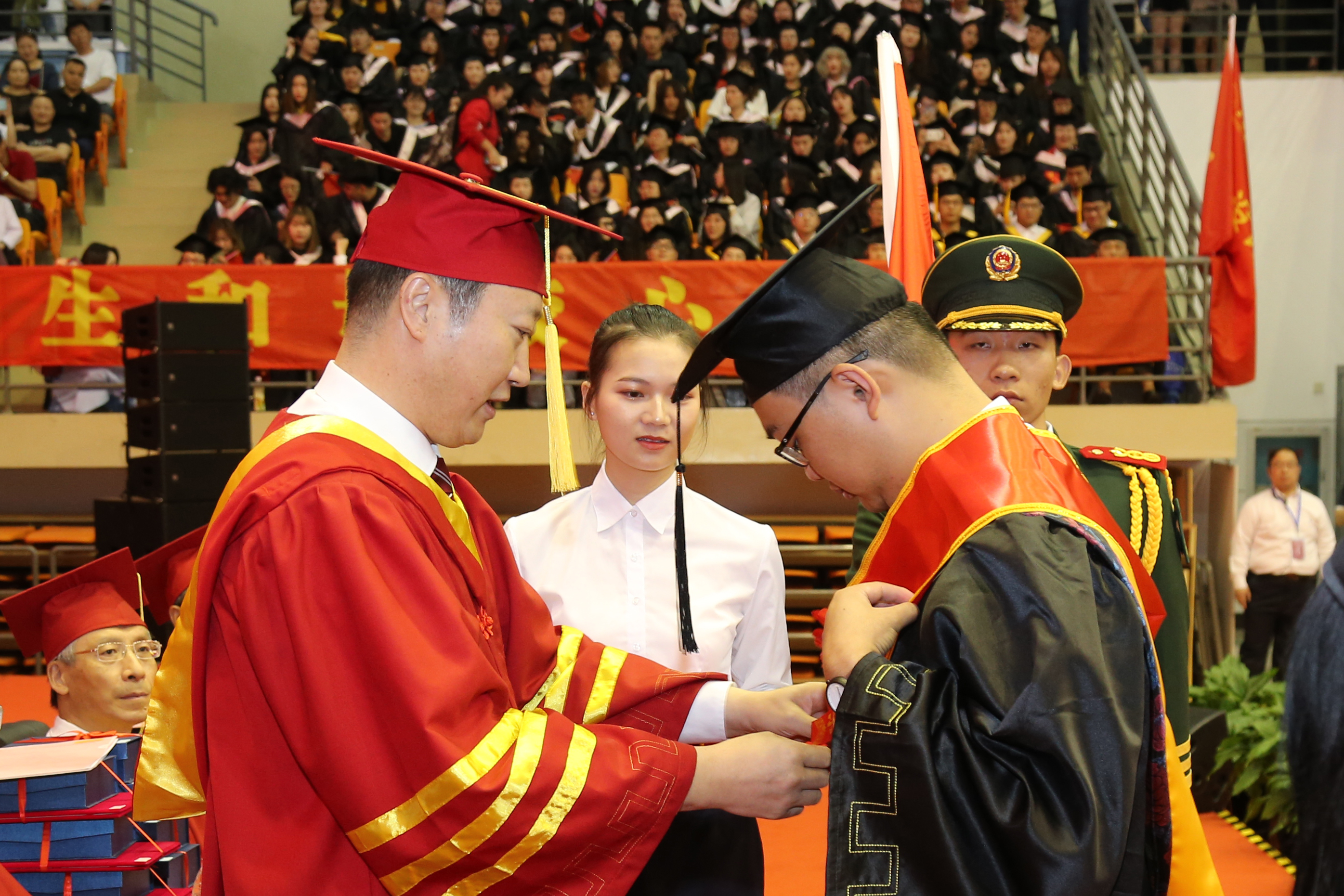 2019届毕业典礼共分为四个篇章,《拼搏奋斗、敢做先锋》《矢志报国、担当有为》《强国筑梦、光荣使命》及学位授予仪式。典礼上,校党委书记李江为志愿奉献祖国、服务边疆的优秀毕业生代表授旗出征,激励时代新人们为了理想而奋斗。