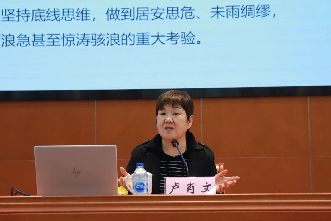 朱晓青副书记、副校长指出,学习贯彻党的二十大精神是当前和今后一个时期的首要政治任务,要深刻领悟教育、科技和人才在全面建设社会主义现代化国家新征程中的特殊地位,立足学校转型发展,为学生工作开创新赛道,激发新动能,打造新优势,推动学生工作高质量发展。她对全体学工干部提出三点希望:一是聚焦完善思想政治工作体系深入学习二十大精神,既要把学习作为第一要务,多学一层、深学一度,学深学透、多思多想,又要充分引领带动学生将思想和行动统一到党的二十大精神上来;二是聚焦学生工作高质量发展深入落实二十大精神,打造高质量思政育人、就业育人、国防育人、心理育人、资助育人、社区育人、研究生思政教育;三是聚焦高素质专业化队伍建设加强辅导员自身发展,聚焦辅导员主责主业,在做好学生政治领导、思想引导、情感疏导、学习辅导、行为教导、就业指导工作的基础上,积极开展组团式活动研究,组建辅导员教学团队、科研团队,形成更多高水平成果,为学校教育事业高质量发展做出学工贡献。