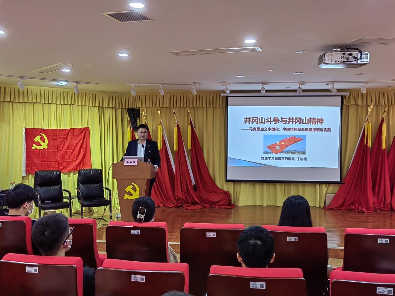 党的二十大报告号召全党学习和践行伟大建党精神,在新的征程上更加坚定、更加自觉地牢记初心使命、开创美好未来。为学习宣传贯彻党的二十大精神,传承红色基因、赓续红色血脉,提升机械与汽车工程学院师生政治理论水平,11月25日下午,王岩松副校长在交通大楼8B222作了《井冈山斗争与井冈山精神》专题党课,机械与汽车工程学院教师党员和研究生党员参加学习。